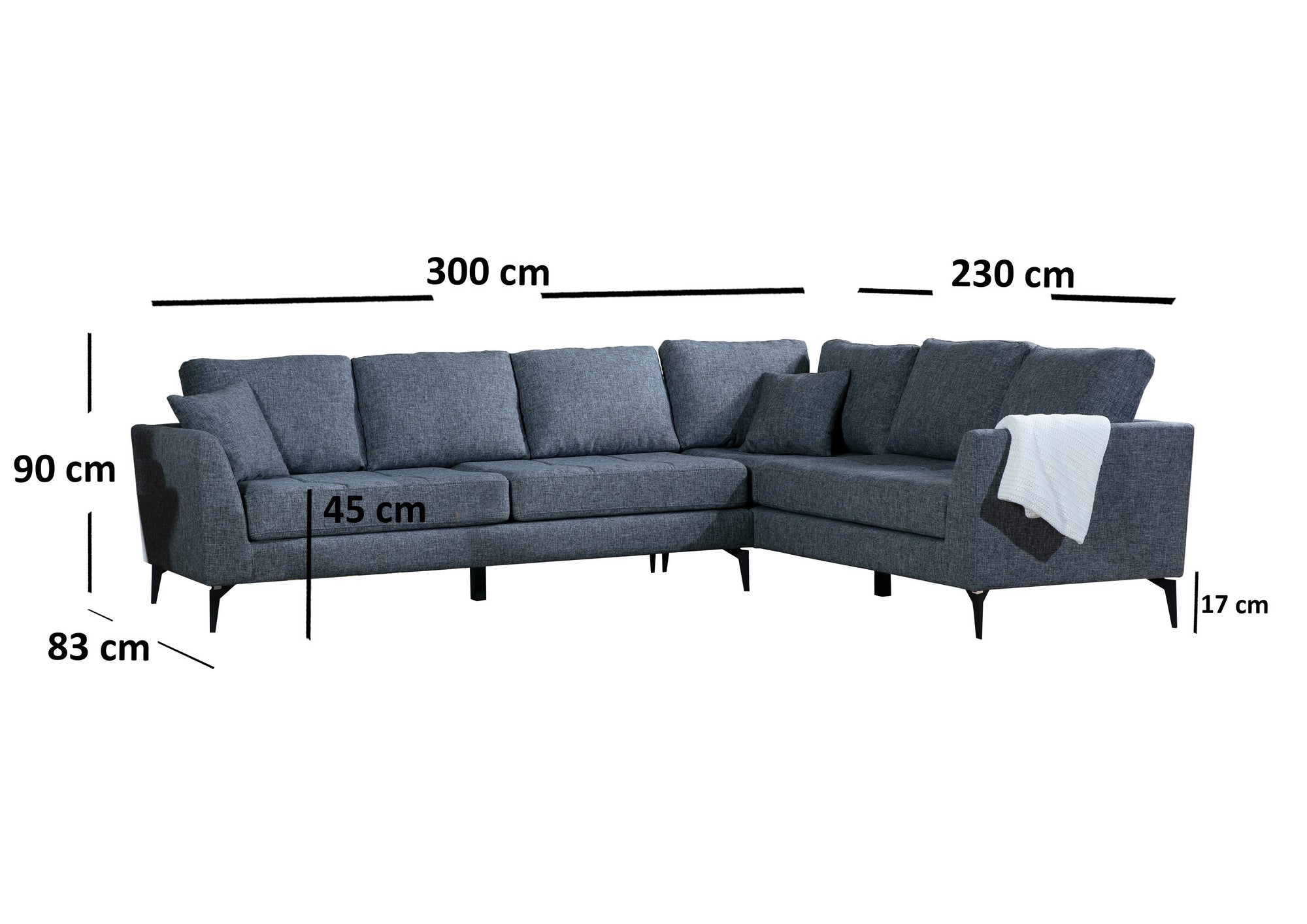 Met zijn strakke en moderne ontwerp is onze hoekbank een echt pronkstuk. De donkergrijze kleur voegt een vleugje verfijning toe aan elke kamer, terwijl de matzwarte metalen poten zorgen voor een eigentijds randje. Het effen kleurenconcept in antraciet geeft het een industriële charme die zeker indruk zal maken.