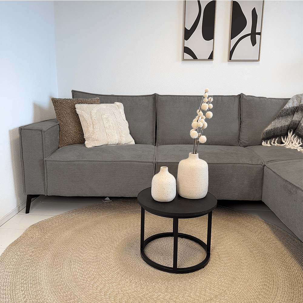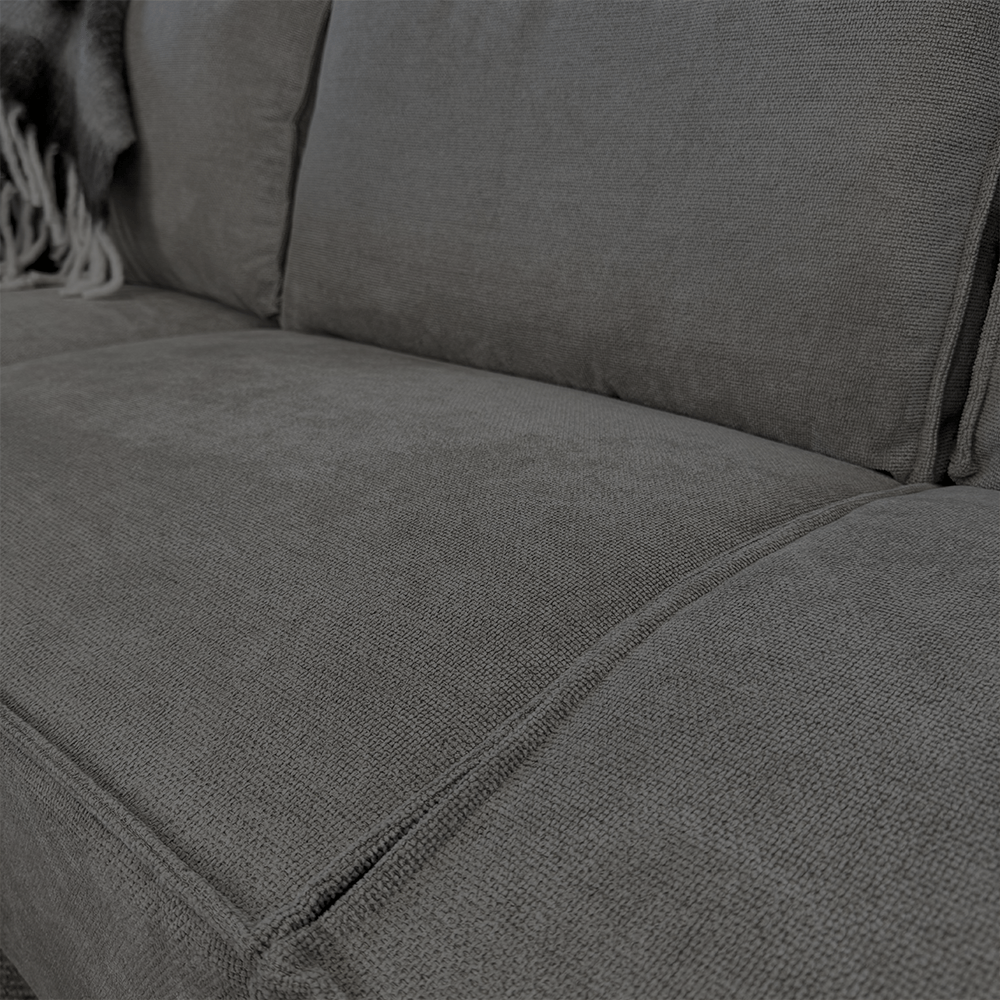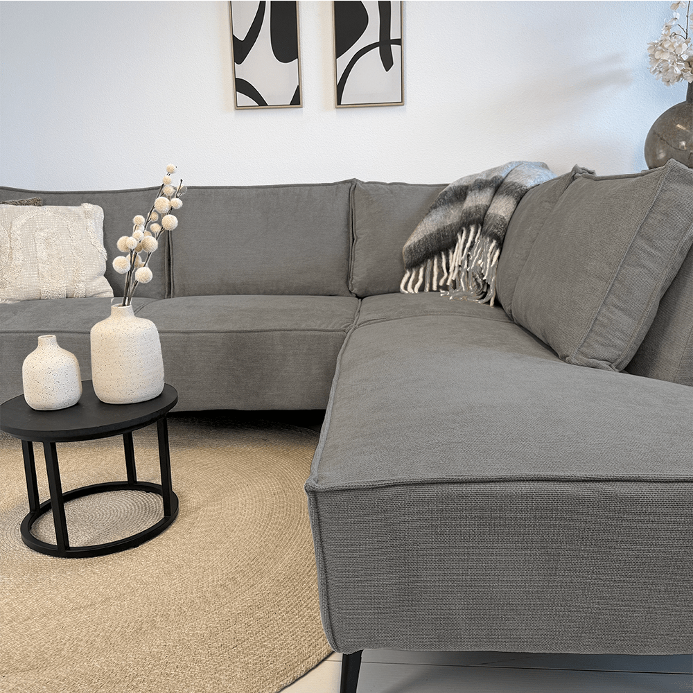 Hoekbang Yara is bekleed met een zachte en duurzame chenille stof in een antraciet kleur. Chenille staat bekent om het comfortabele en luxe gevoel, maar bovenal de duurzaamheid. De stof geeft de bank een rijke, zachte textuur en een licht glanzende afwerking die een vleugje luxe toevoegt aan je interieur.