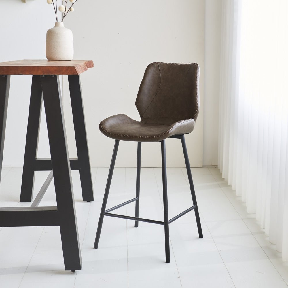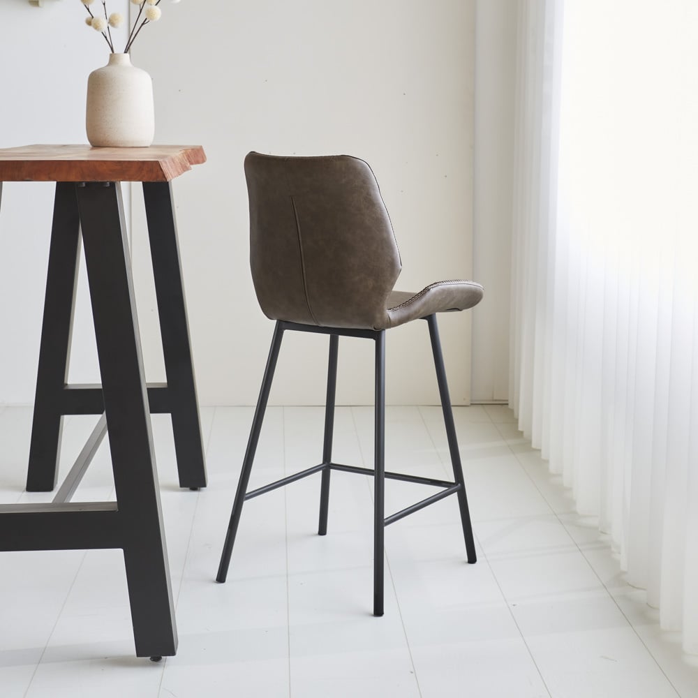 Het frame van de Beau barkruk is gemaakt van zwart gepoedercoat staal, wat in combinatie met de PU kunstleren zitting zorgt voor een modern industriële uitstraling. Door de voetsteun kan je op deze stoel heerlijk tafelen. Onder dit product zitten vloerdoppen voor het beschermen van de vloer.