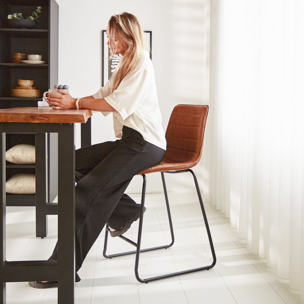 De barkruk Mark cognac is een stoere barstoel welke zijn heerlijke zitcomfort dankt aan een dikke zitting en stevige rugleuning. Geschikt voor ieder interieur! Leverbaar in verschillende kleuren en met bijpassende eetkamerstoelen.
