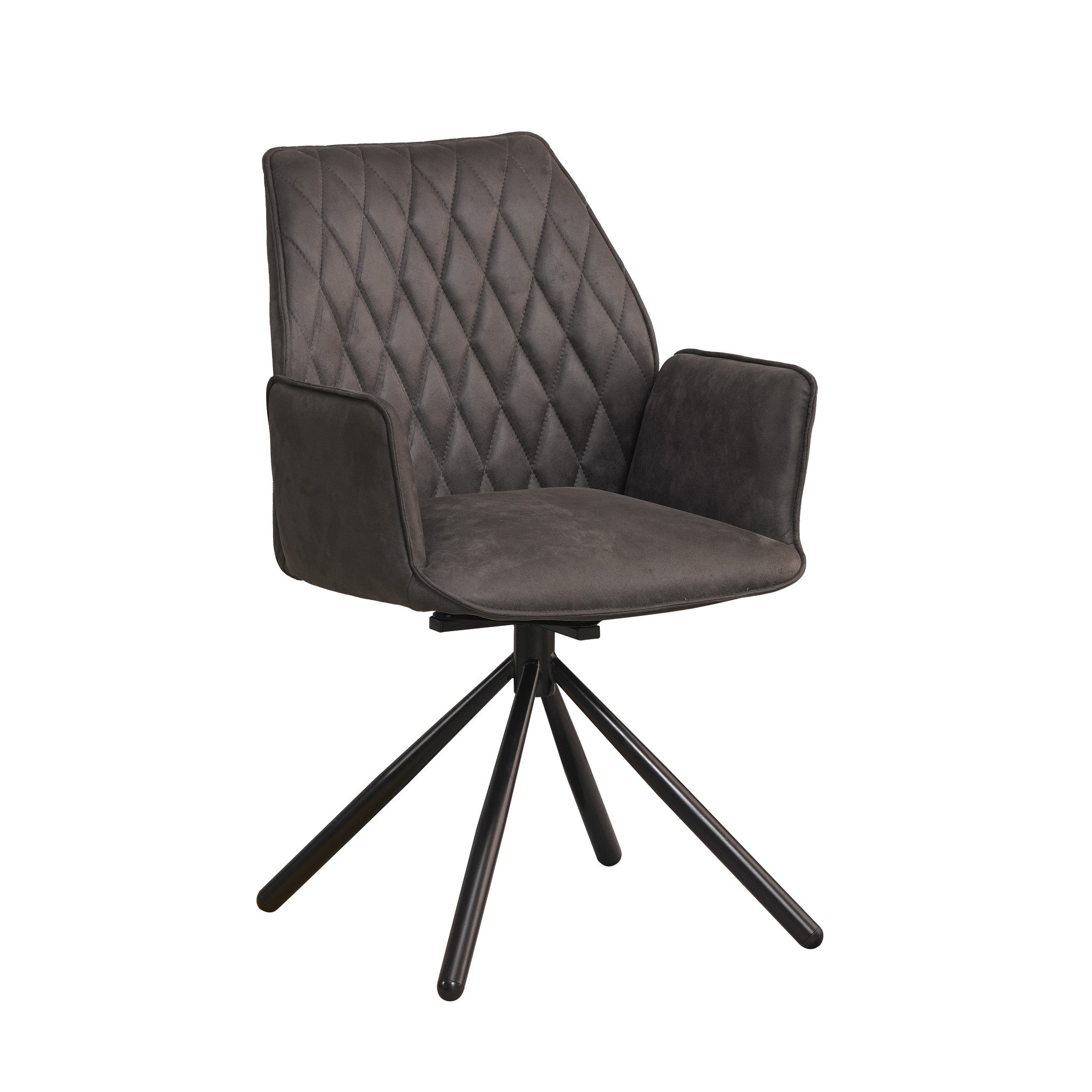 De draaibare stoel Novan is bekleed met microvezel en kenmerkt zich door de opvallende stiknaden wat de stoel een klassieke uitstraling geeft.