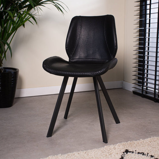 Industriële Eetkamerstoel Zwart Barry Kunstleer - Zonder Armleuningen