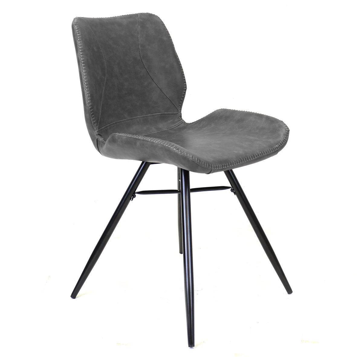 Beau Industriële Eetkamerstoel Antraciet Kunstleer - Zonder Armleuningen