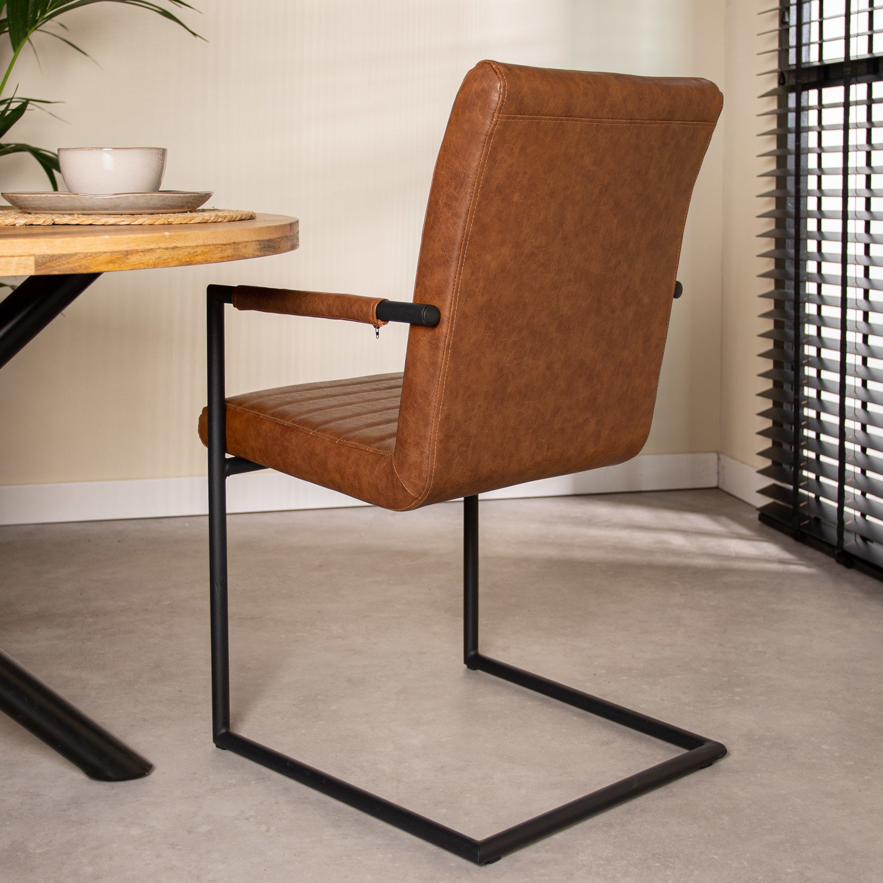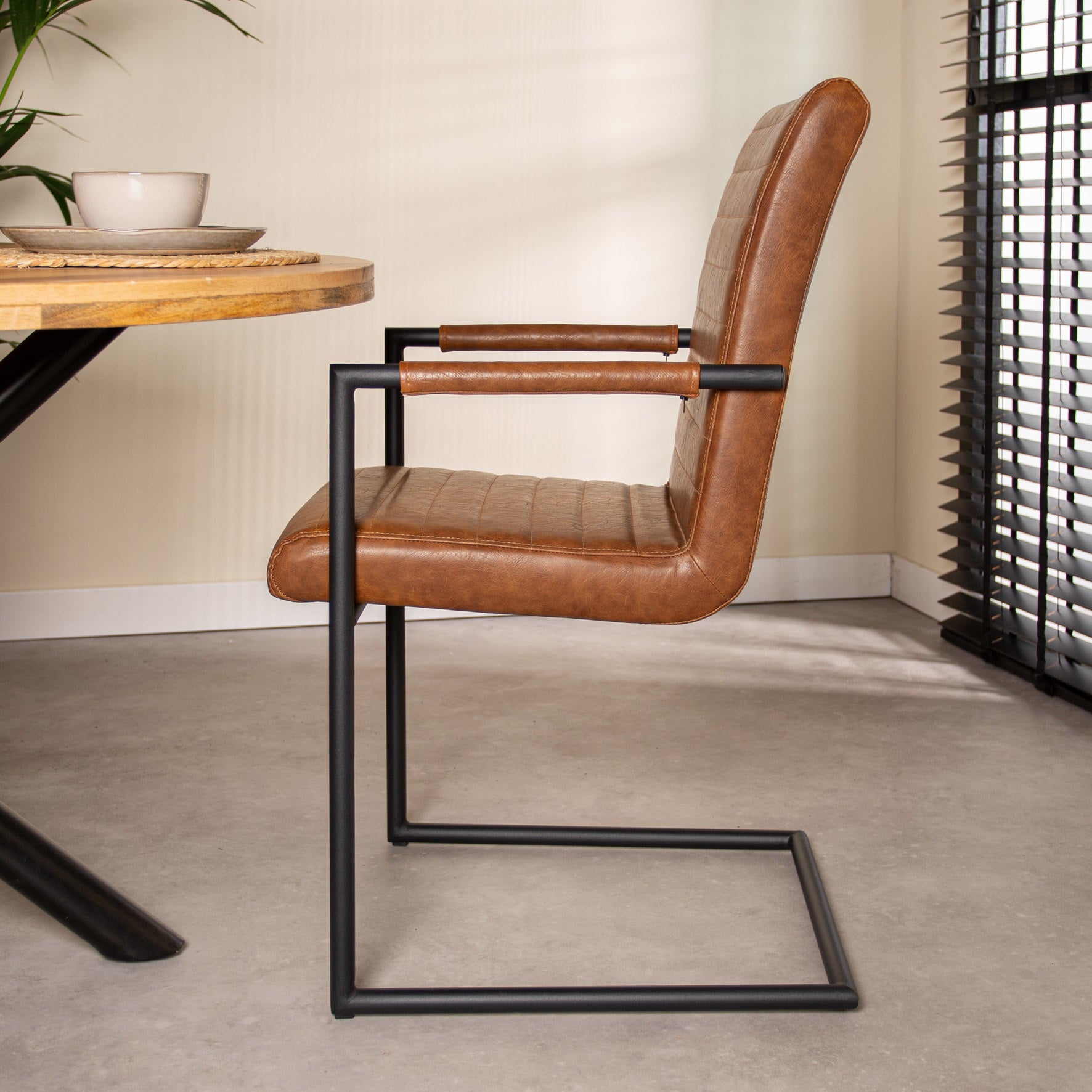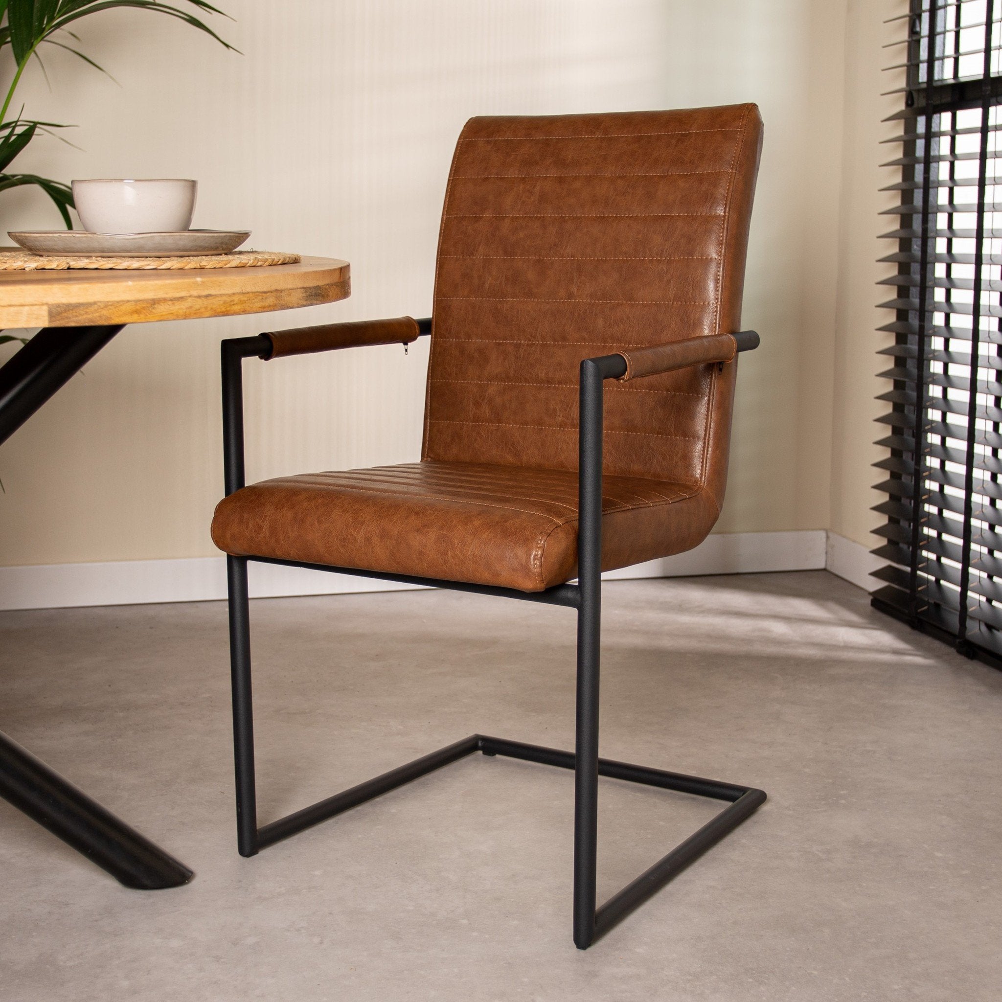 Industriële Eetkamerstoel Cognac Bras - Met Armleuning
