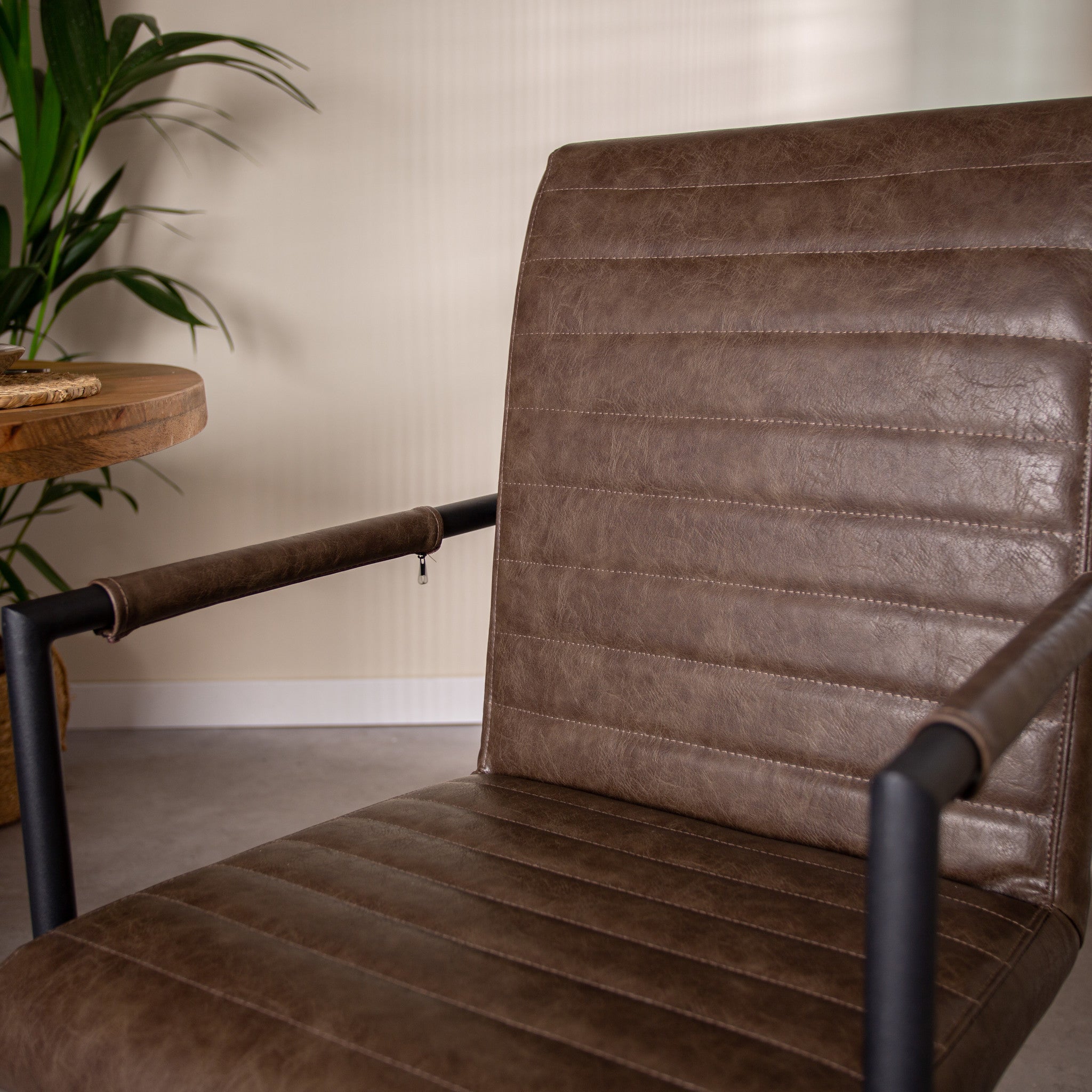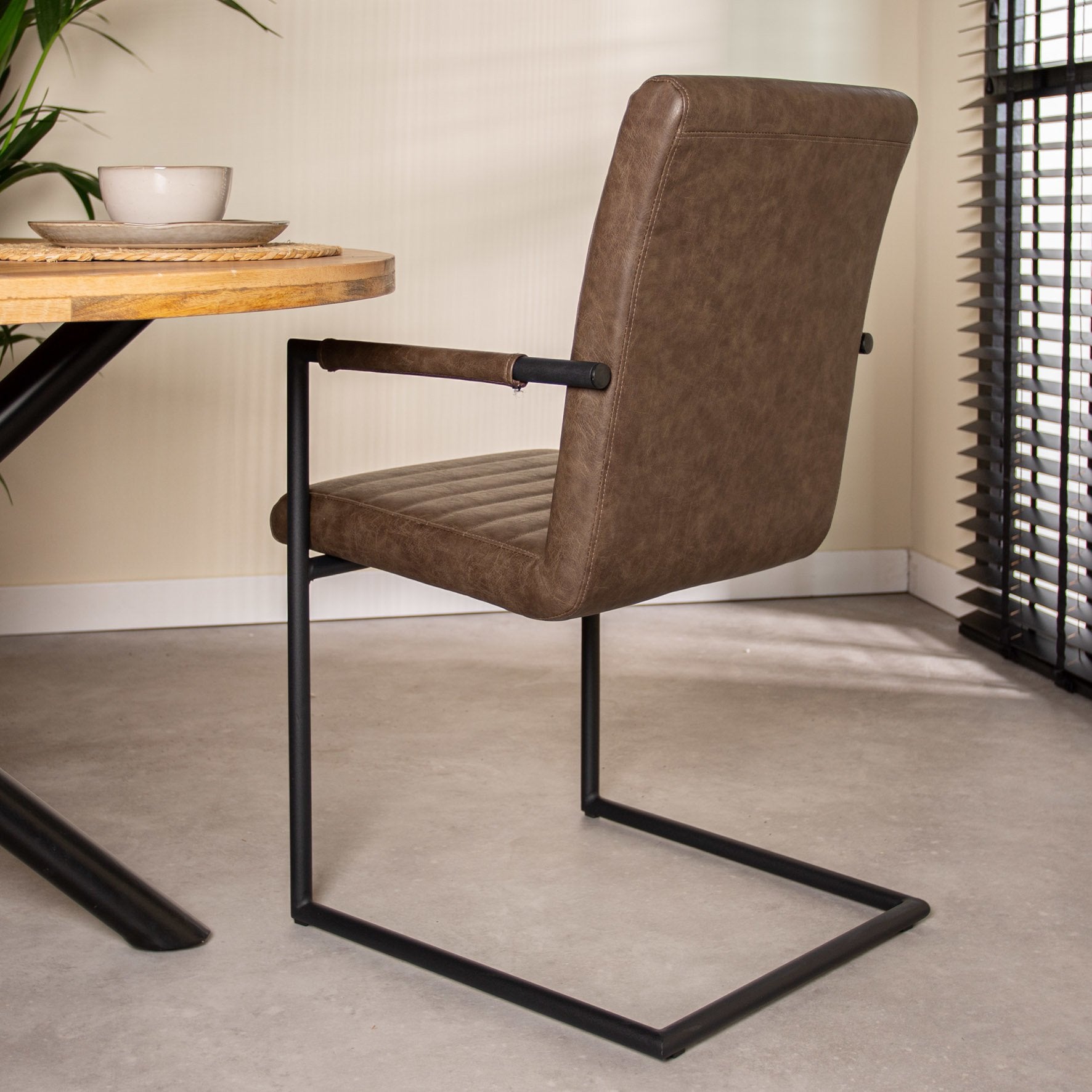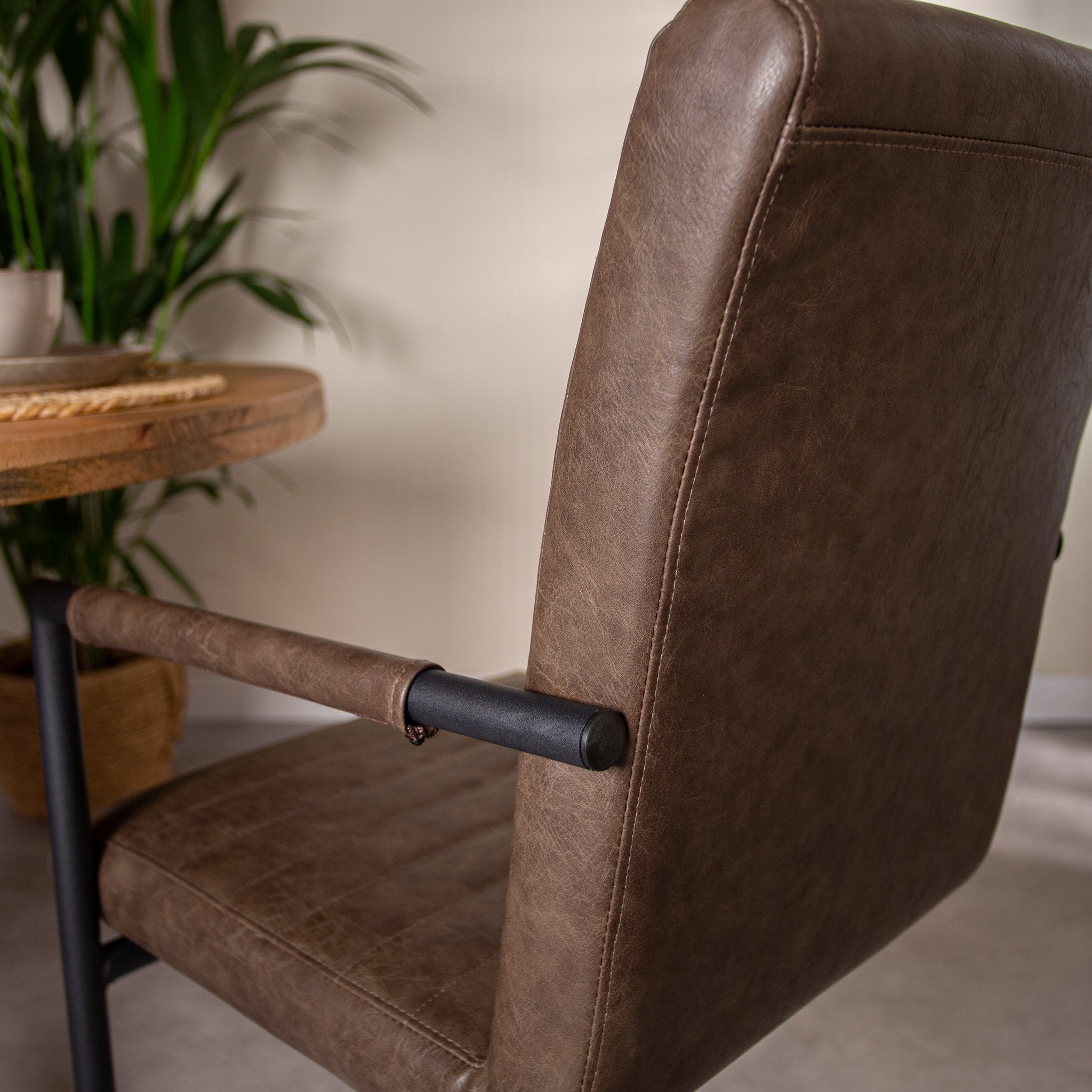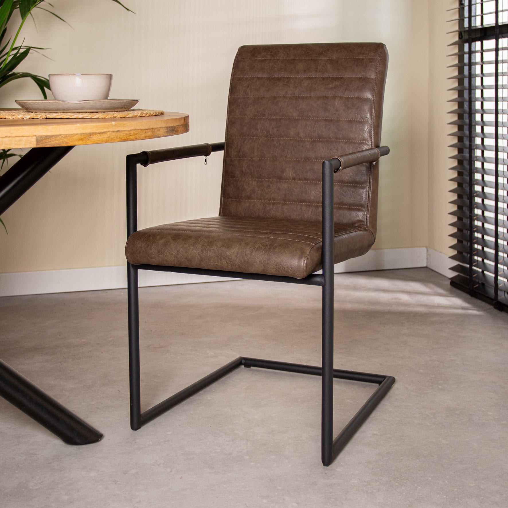 De industriële eetkamerstoel Bras taupe is een stoere eetkamerstoel welke zijn heerlijke zitcomfort dankt aan een dikke zitting en stevige rugleuning met armleuningen.