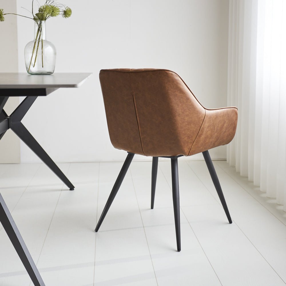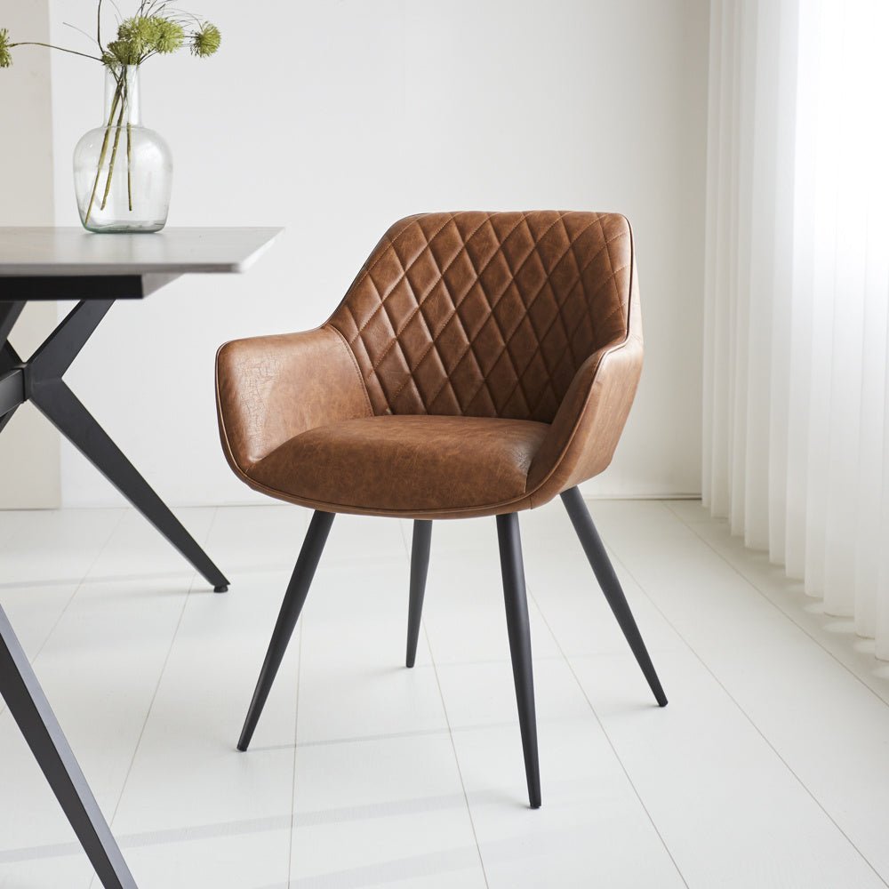 Industriële Eetkamerstoel Cognac Cara Kunstleer - Ruitpatroon - Met Armleuning