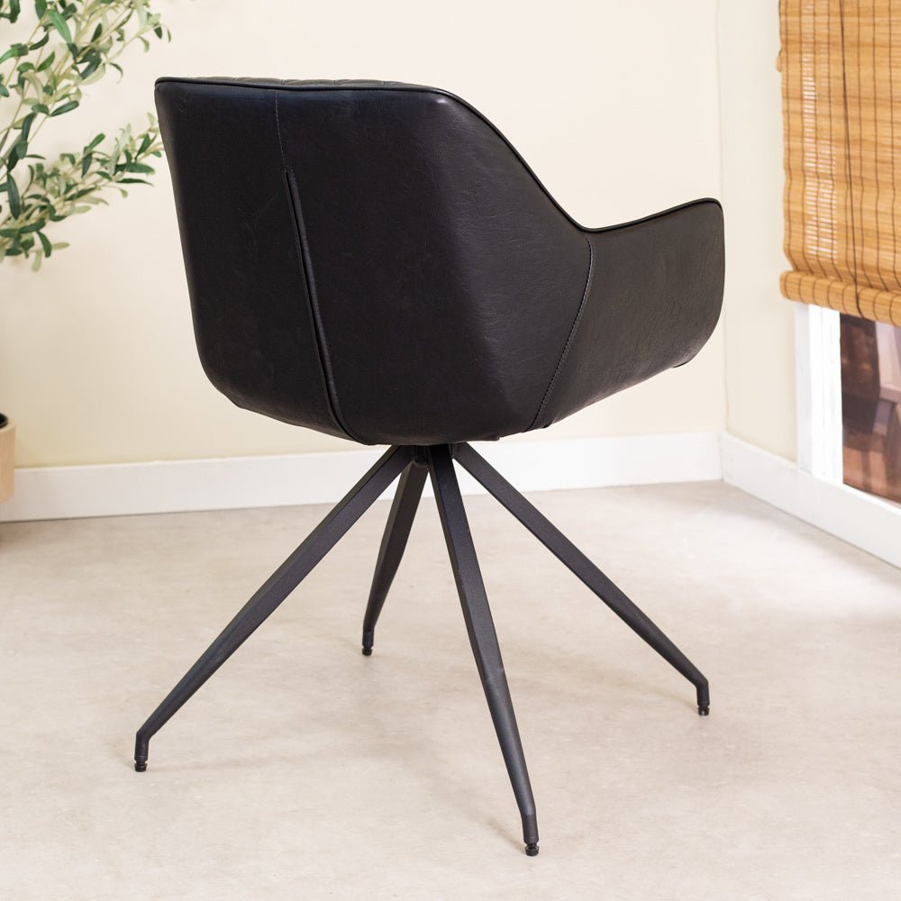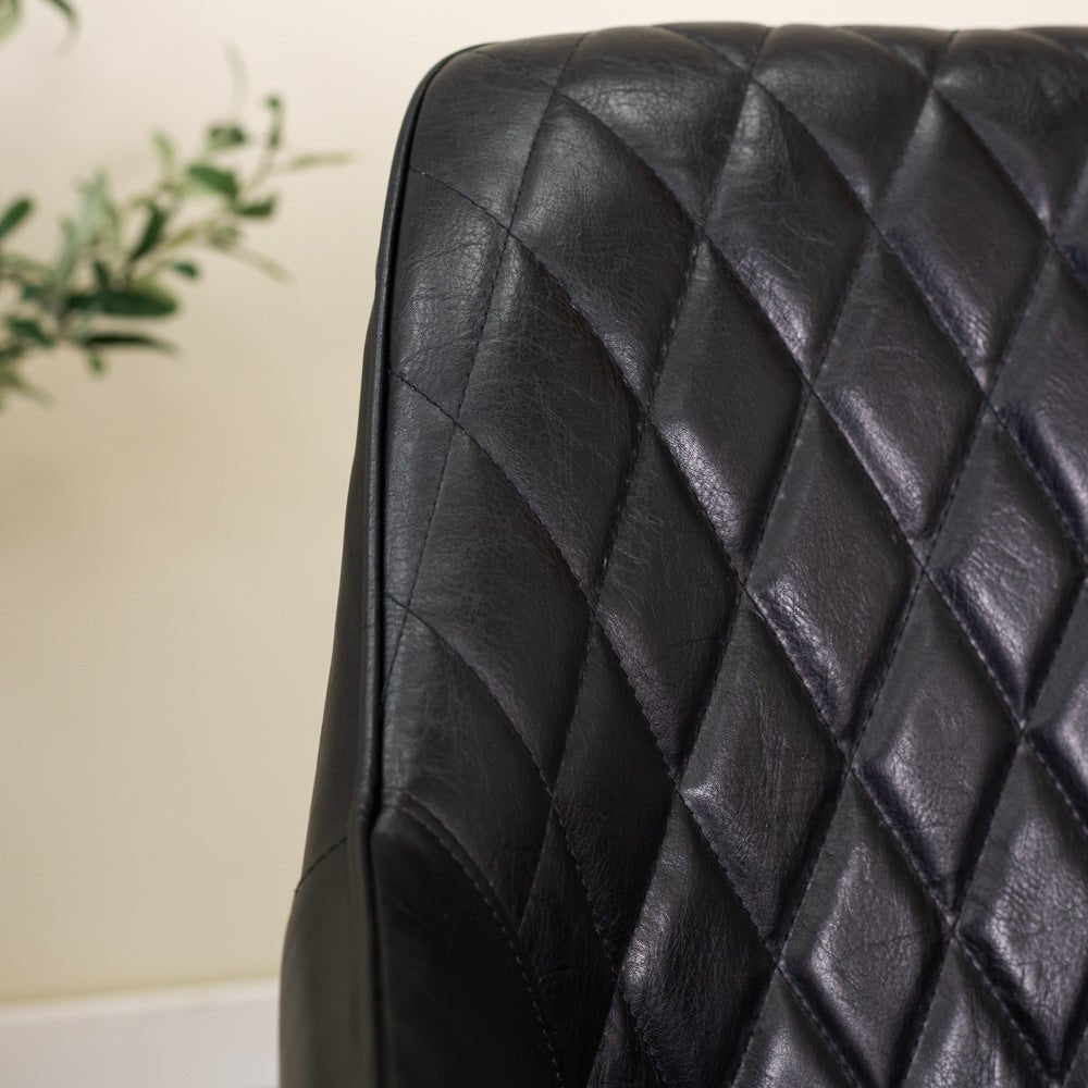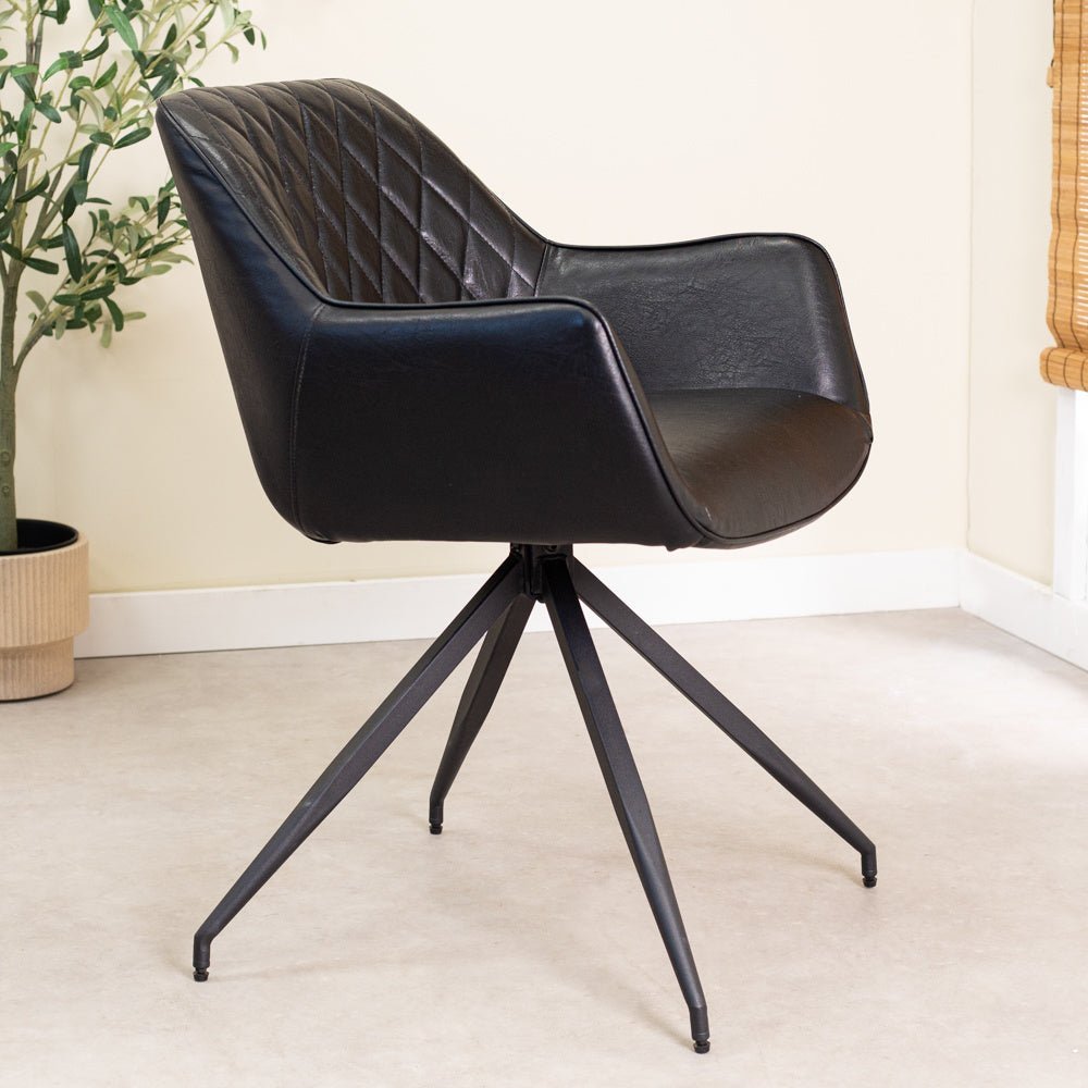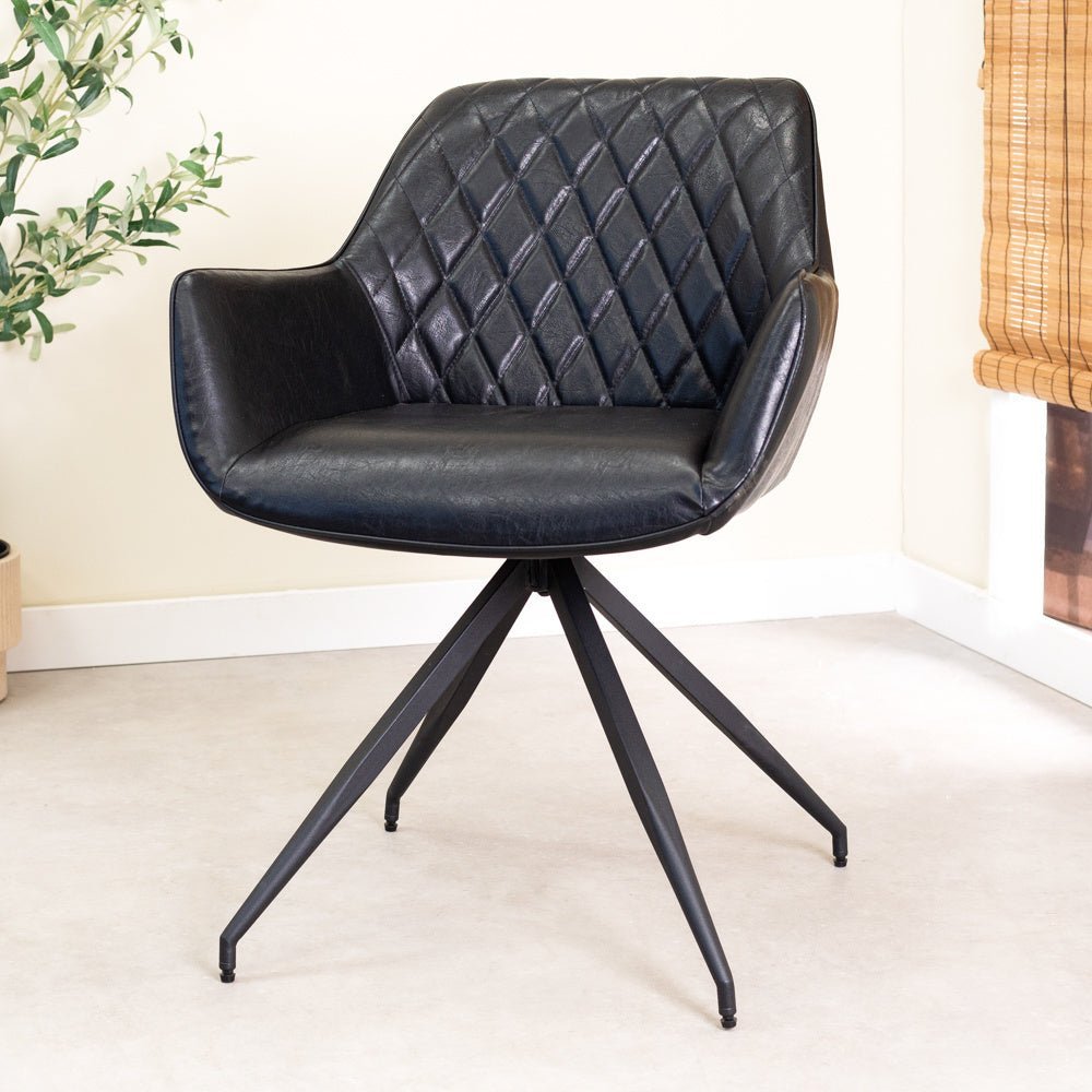 Industriële Eetkamerstoel Zwart Gian - Kunstleer - Ruitpatroon - Met Armleuningen