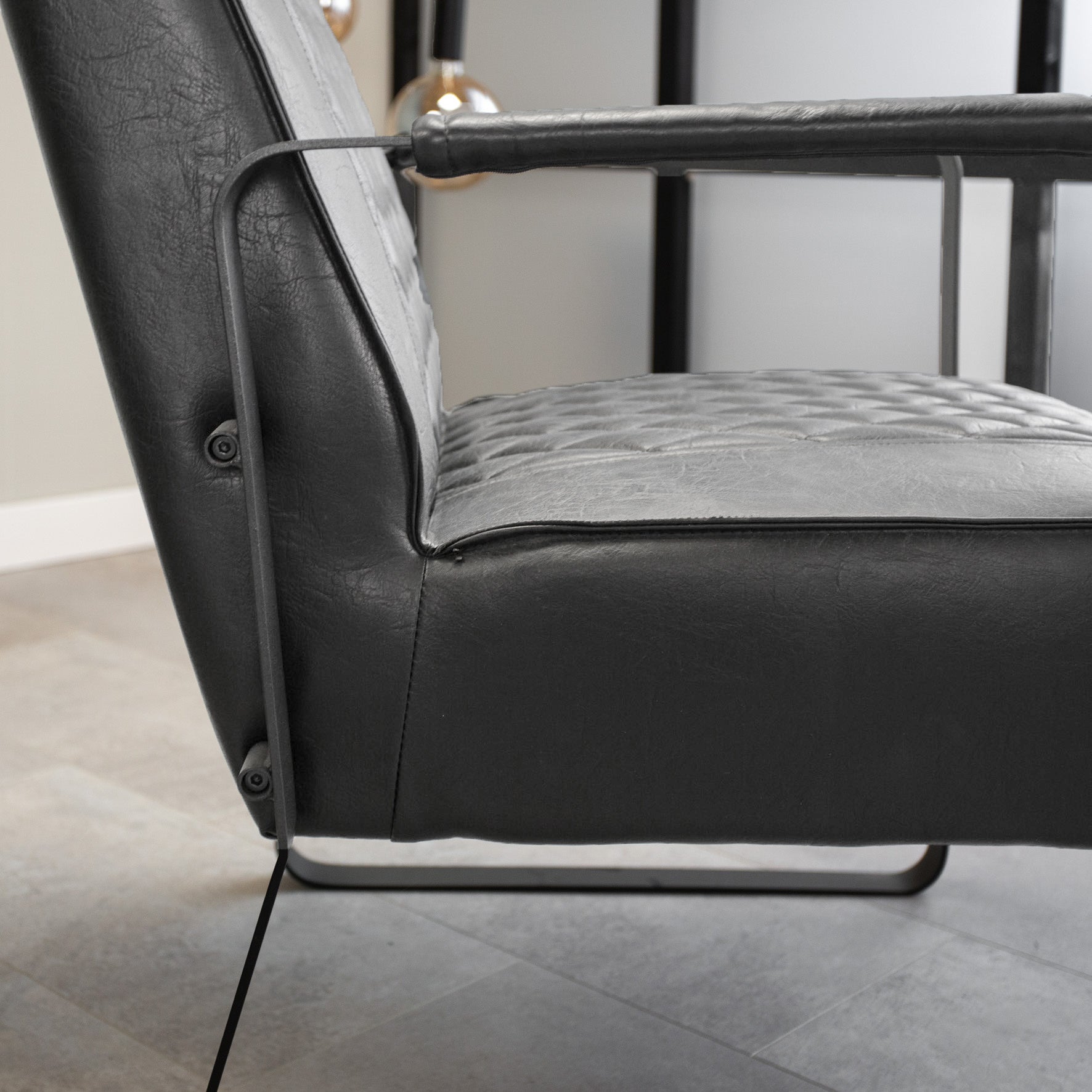 Industriële fauteuil antraciet kunstleer ruitpatroon Peter