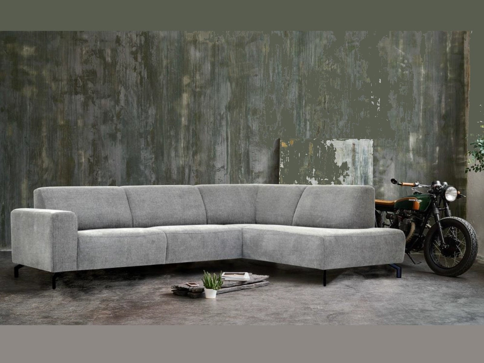 Industriële hoekbank stof grijs Verona rechts