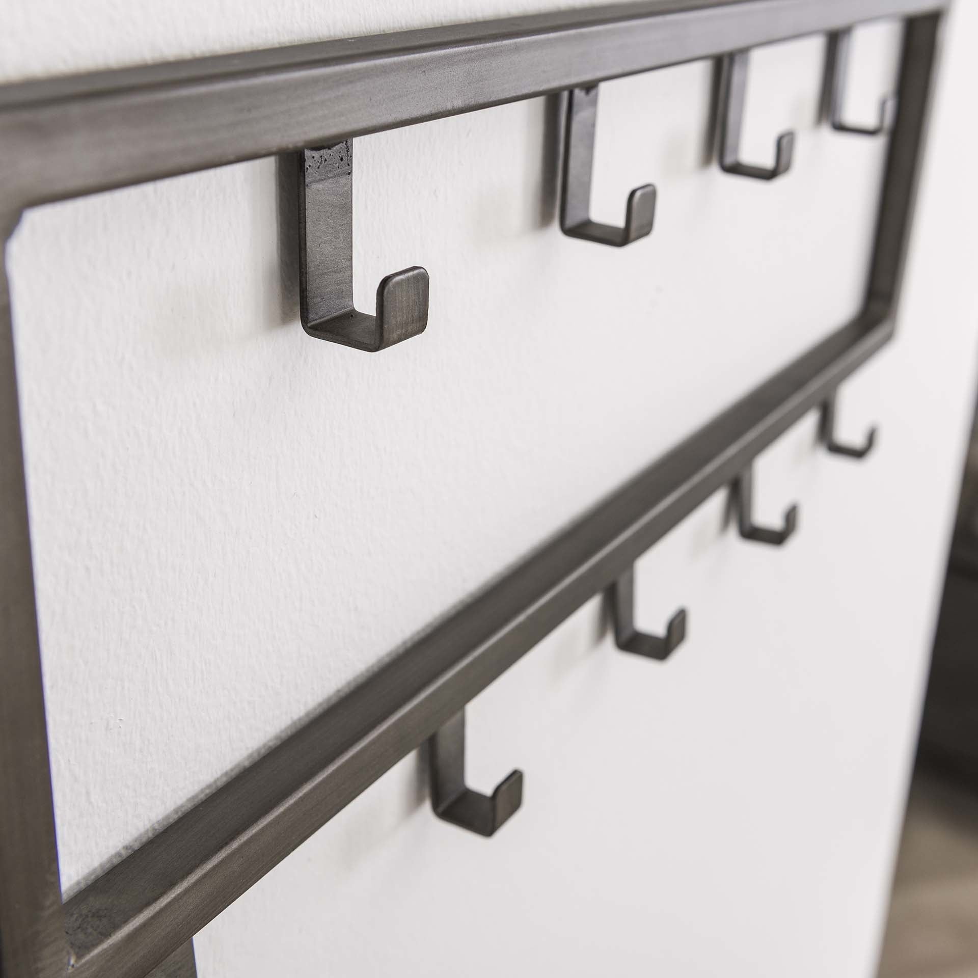 De industriële kapstok Milano is gemaakt van geborsteld metaal en heeft maar liefst 15 haken. Omdat de haakjes schuin boven elkaar zijn bevestigd, kunnen jassen gemakkelijker en wat meer verspreid worden opgehangen.