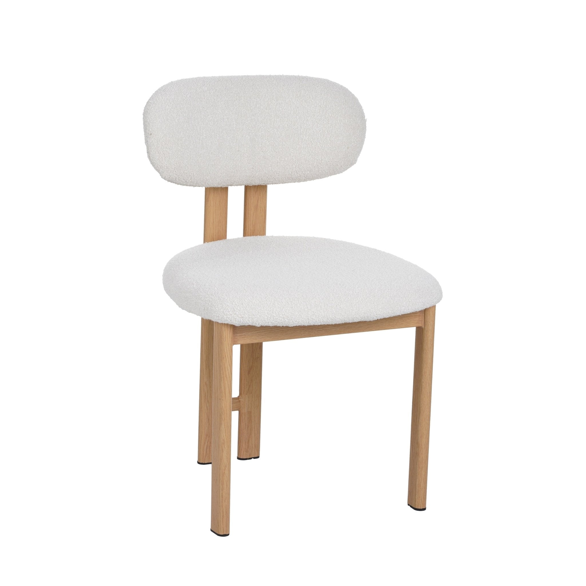 Japandi Eetkamerstoel Miyo Bouclé Beige - Eikenlook Frame