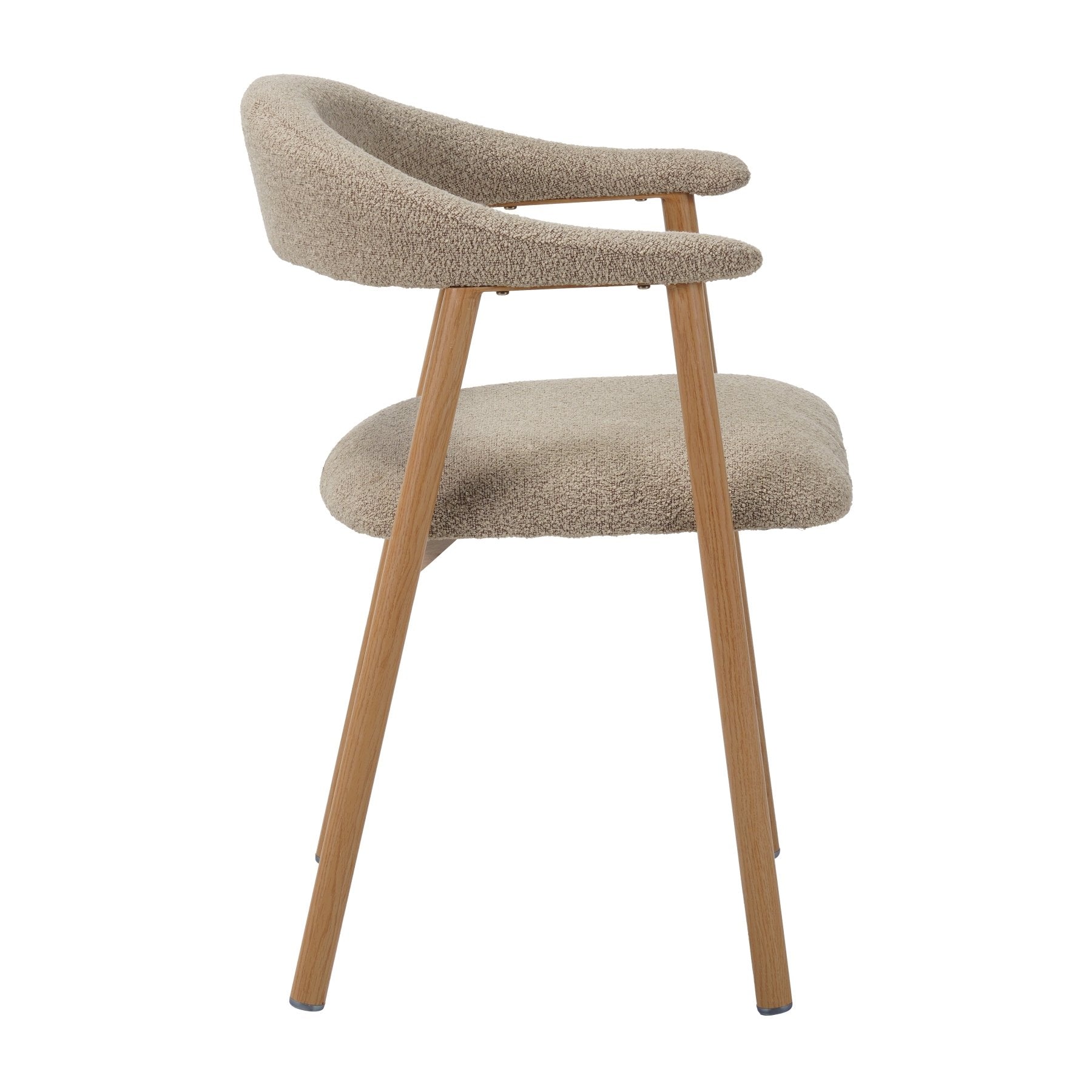 Japandi Eetkamerstoel Zandkleur Bouclé Suki - Eikenlook Frame - Met Armleuning