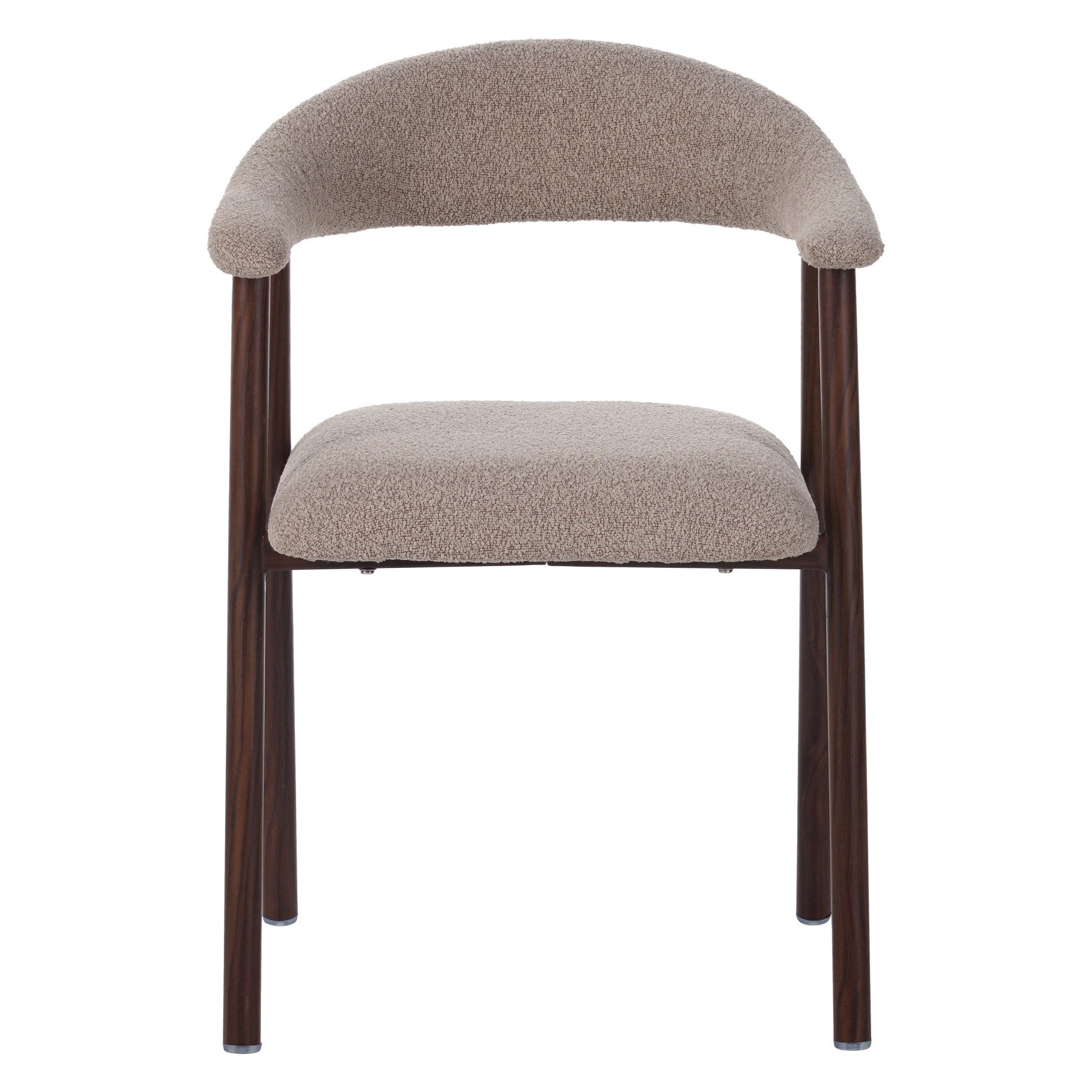 Japandi Eetkamerstoel Zandkleur Bouclé Suki - Walnoot Frame - Met Armleuning