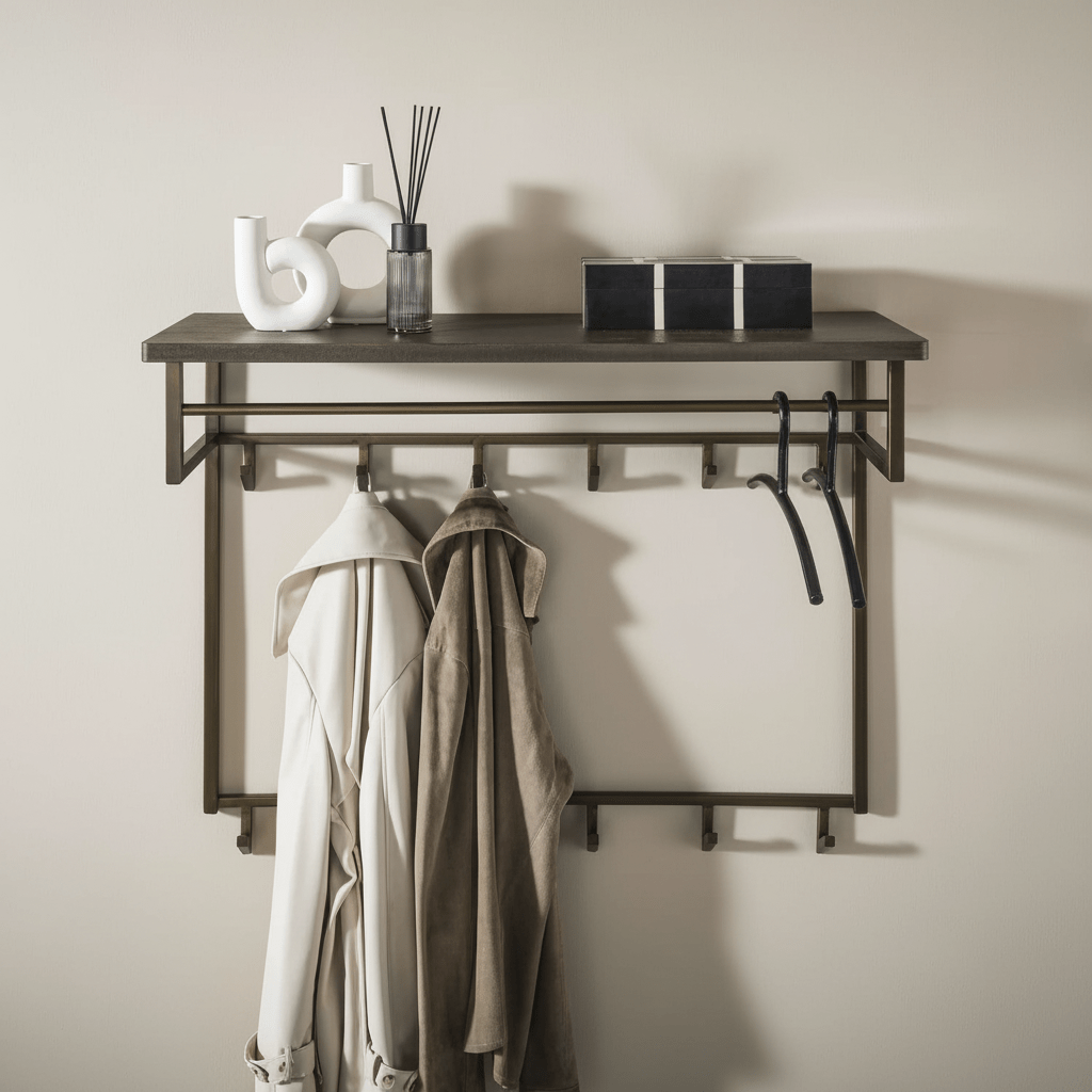 Kapstok Ferre 12-Haaks - Met Hoedenplank - Metaal Antiek Brons