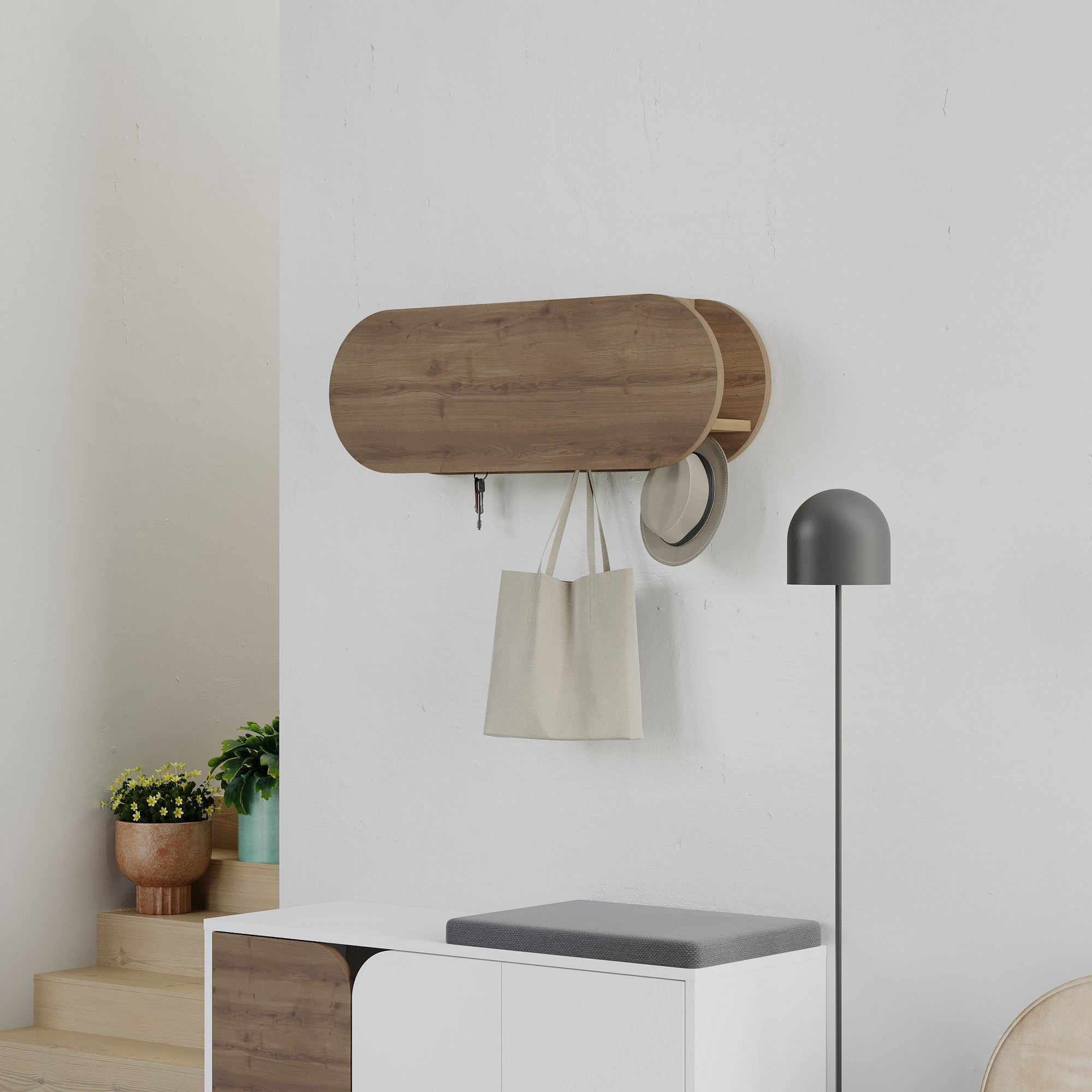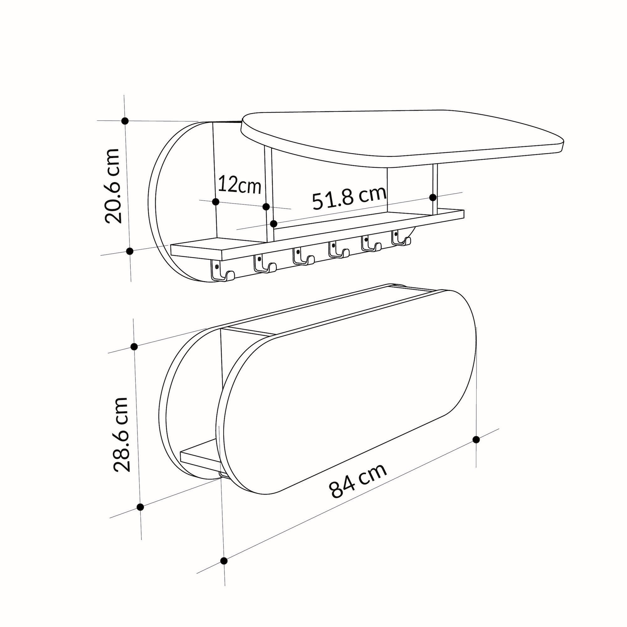 Beschrijving en specificaties van Kapstok Ovaal 6-Haaks - Hitit - 84x29 cm - Met Vak