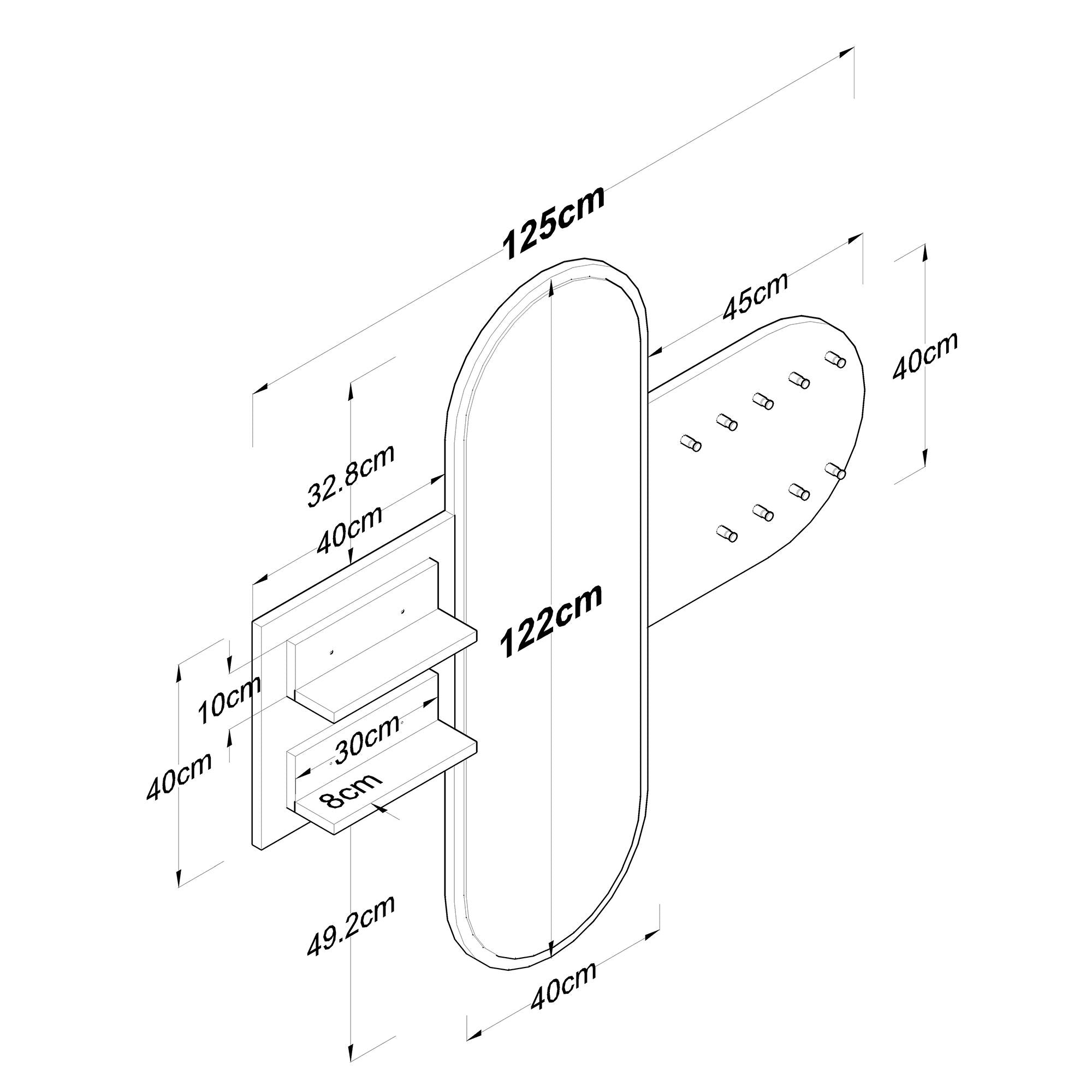 Beschrijving en specificaties van Kapstok Wit Melamine 9-Haaks - Met Spiegel - Twee Plankjes