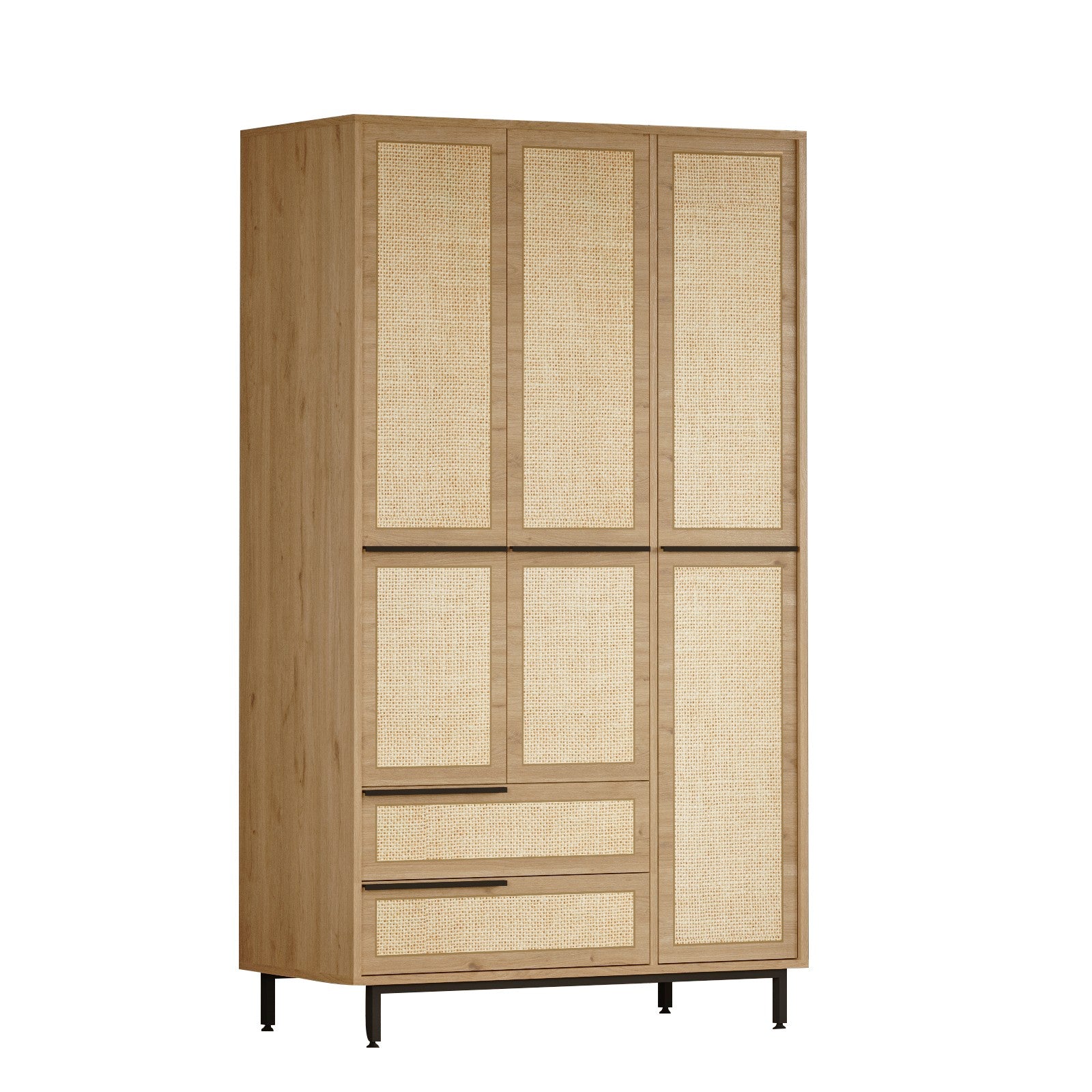 Onze kledingkast is met uiterste precisie gemaakt van 100% melamine, wat duurzaamheid en een lange levensduur garandeert. De dikte van 18 mm zorgt voor extra stevigheid, waardoor het jarenlang een betrouwbare opbergoplossing is. De prachtige kleuren van walnoot en eiken gaan naadloos in elkaar over en creëren een warme en uitnodigende sfeer in je slaapkamer.