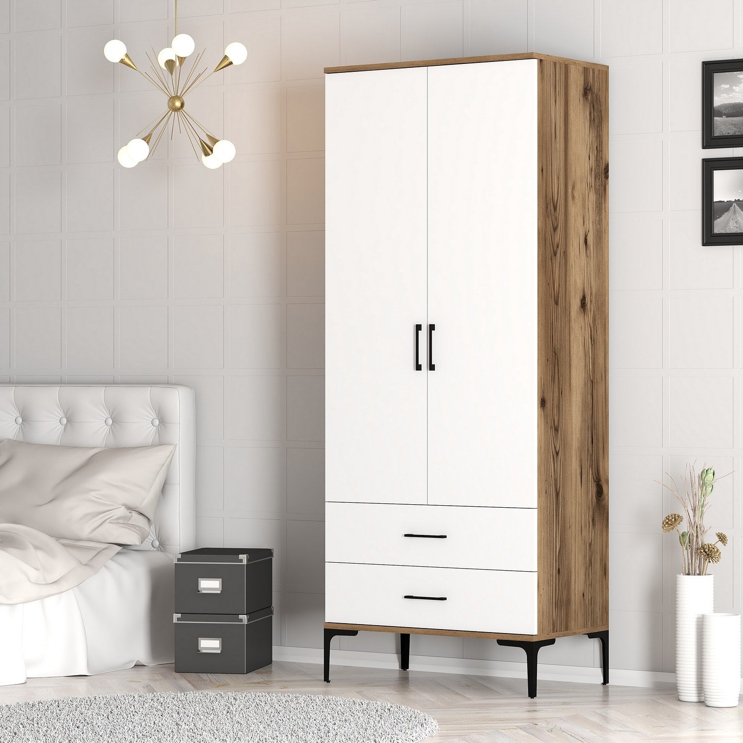 Kledingkast Kumsal T Walnoot Wit Melamine 80x47,5x201,4 cm