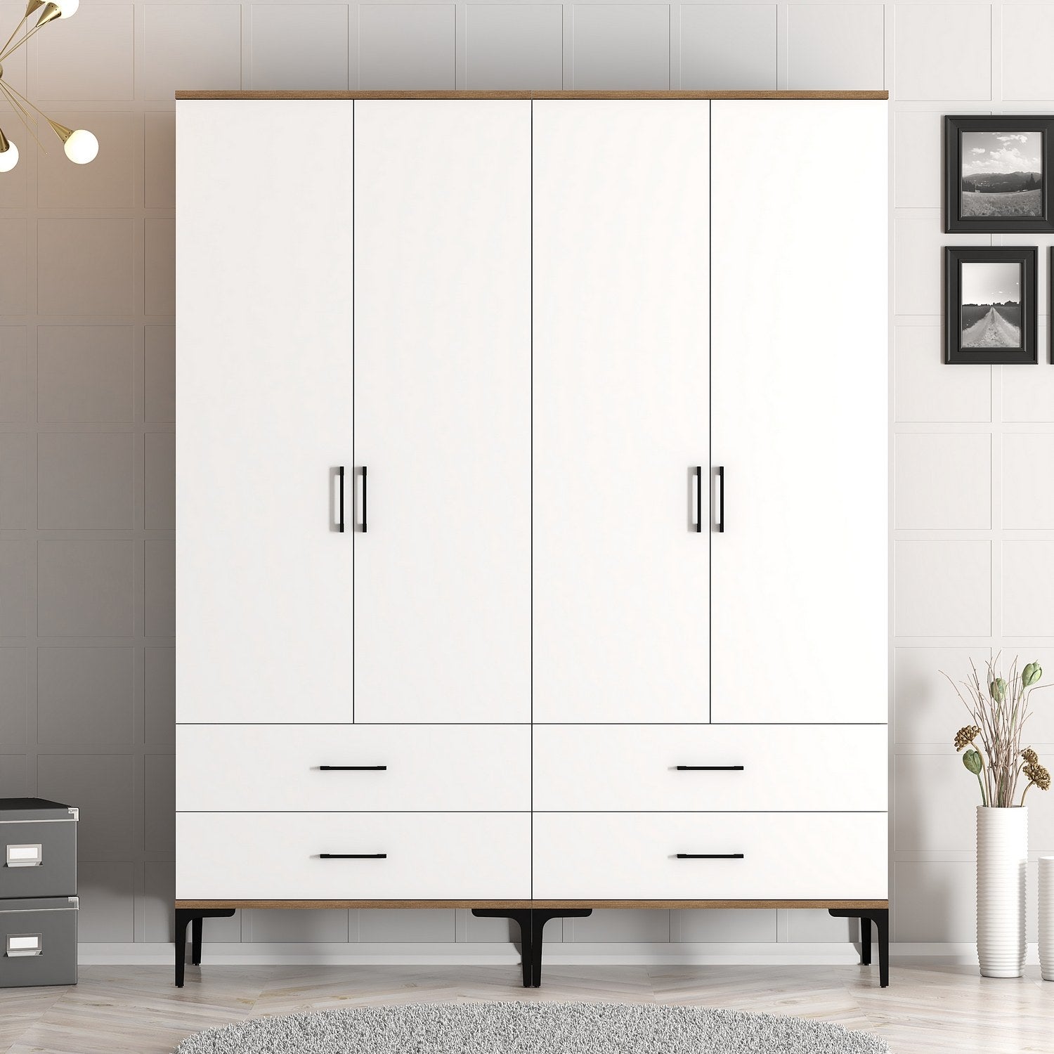 Kledingkast Kumsal TT Walnoot Wit Melamine 160x47,5x201,4 cm