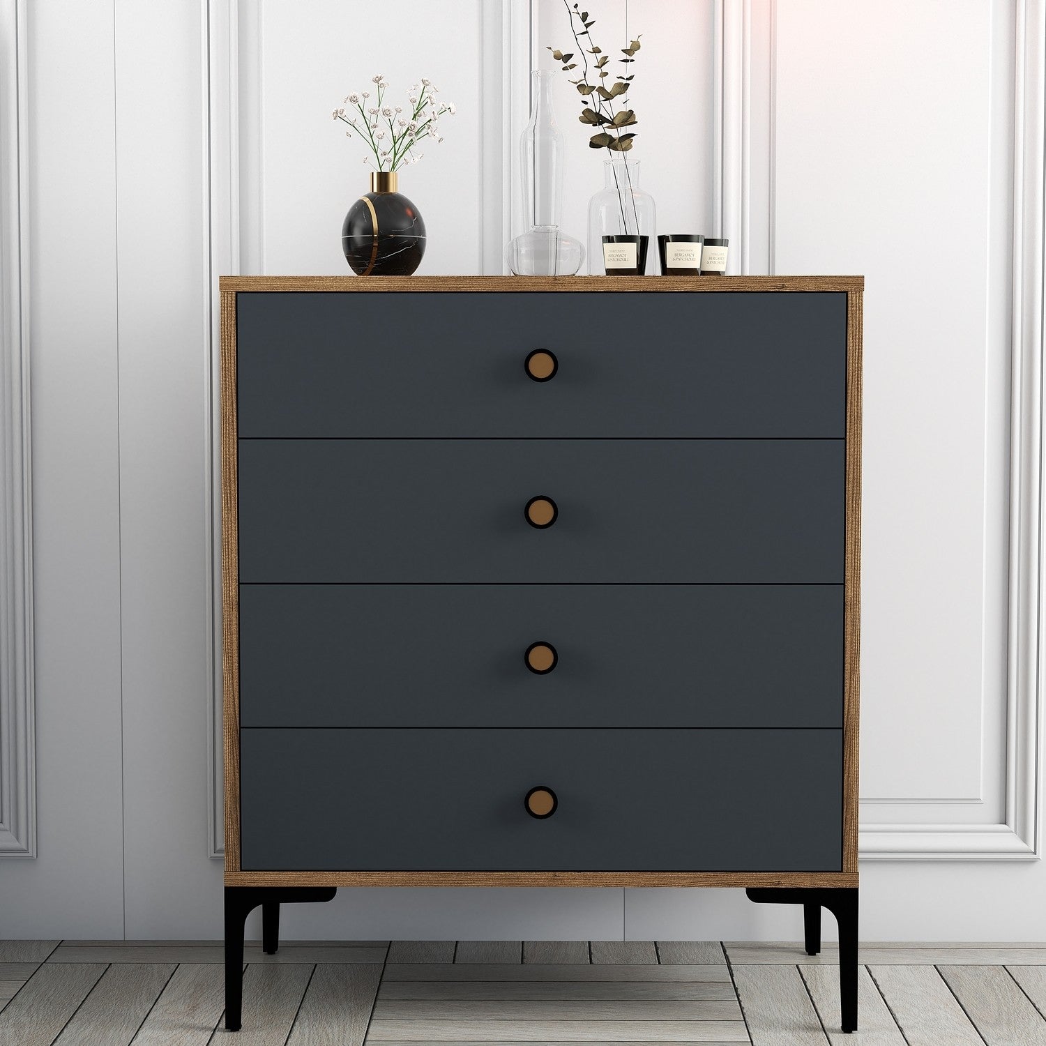 Ladekast Lizbon Walnoot Antraciet Melamine 76x90,7x40 cm - 4 lades