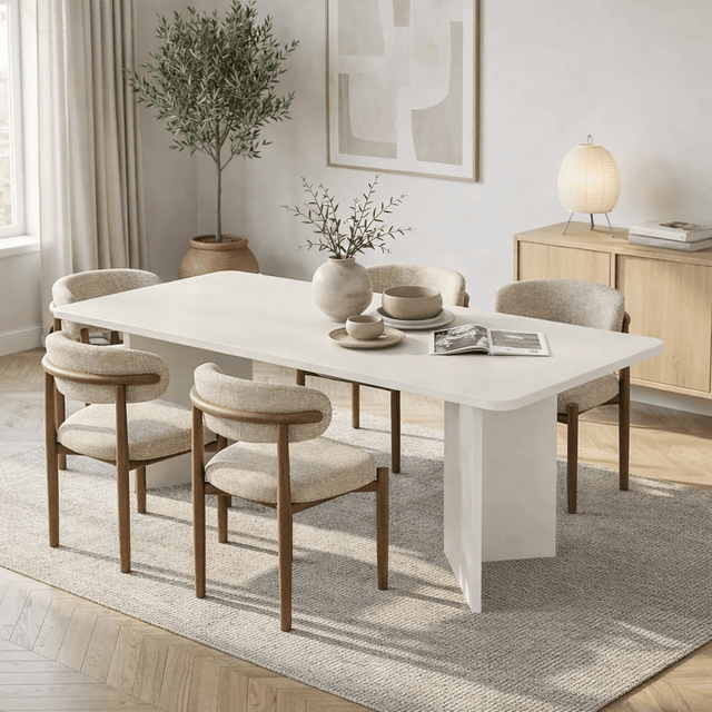 De kleur Hout Wit voegt rust toe aan elke ruimte en laat zich moeiteloos combineren met verschillende interieurs. Zo ontstaat een uitnodigende plek waar iedereen zich welkom voelt en graag aan tafel zit.