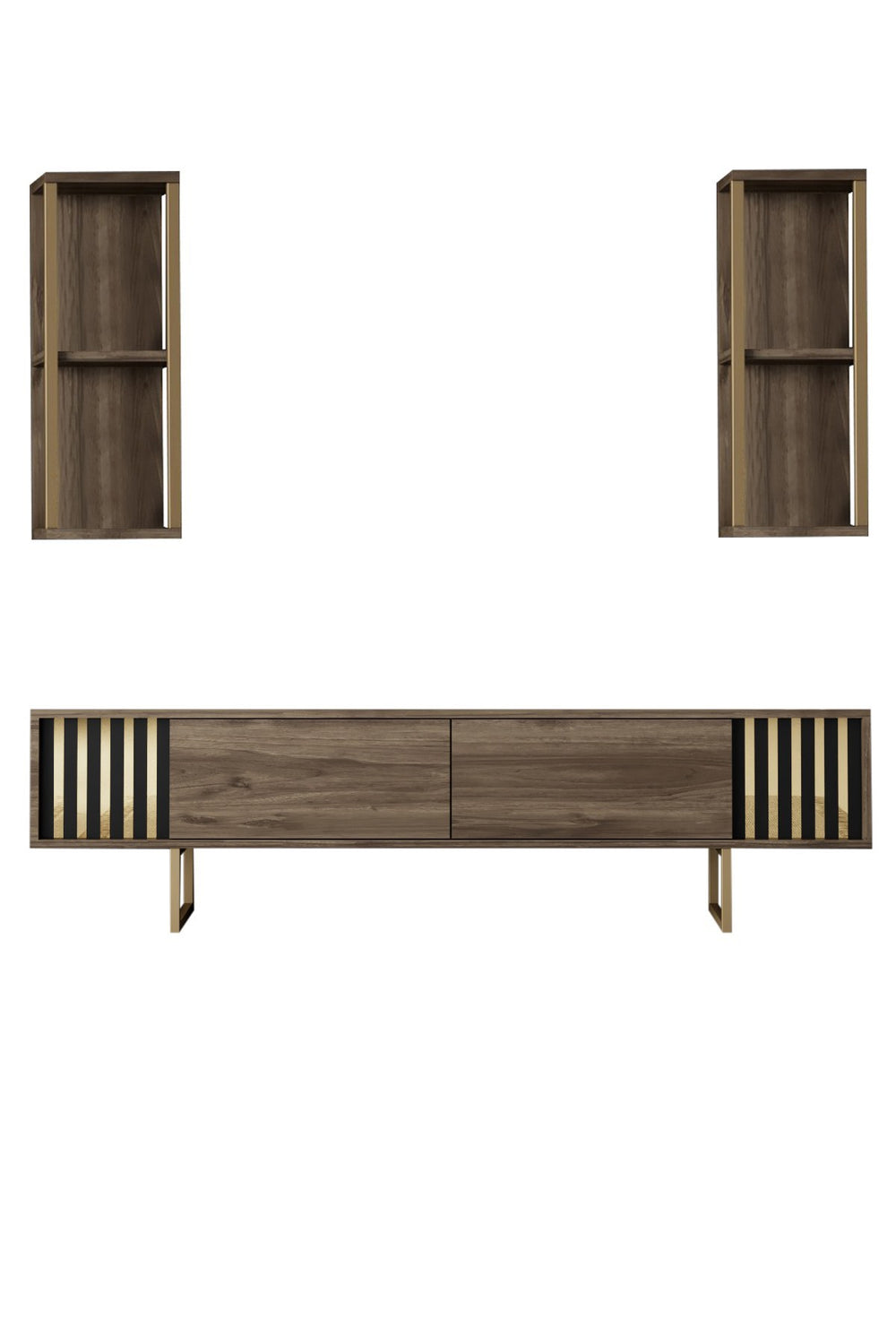 Meubelset Walnoot-Goud - Gold Line - Salontafel + TV Meubel