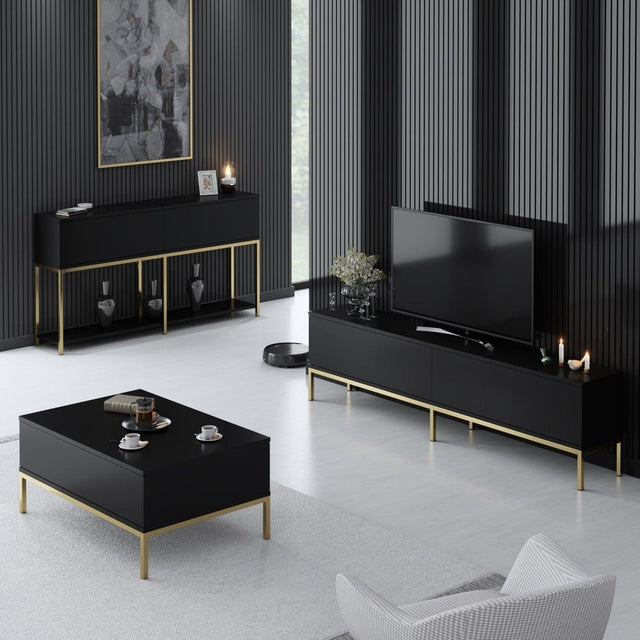 Meubelset Zwart Lord - Salontafel + TV Meubel + Dressoir - Gouden Frame