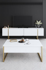 Beschrijving en specificaties van Meubelset Wit Luxe - Salontafel + TV Meubel + Dressoir - Gouden Frame
