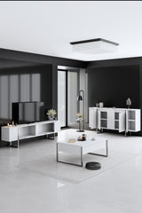 Meubelset Wit Luxe - Salontafel + TV Meubel + Dressoir Luxe - Zilver Frame