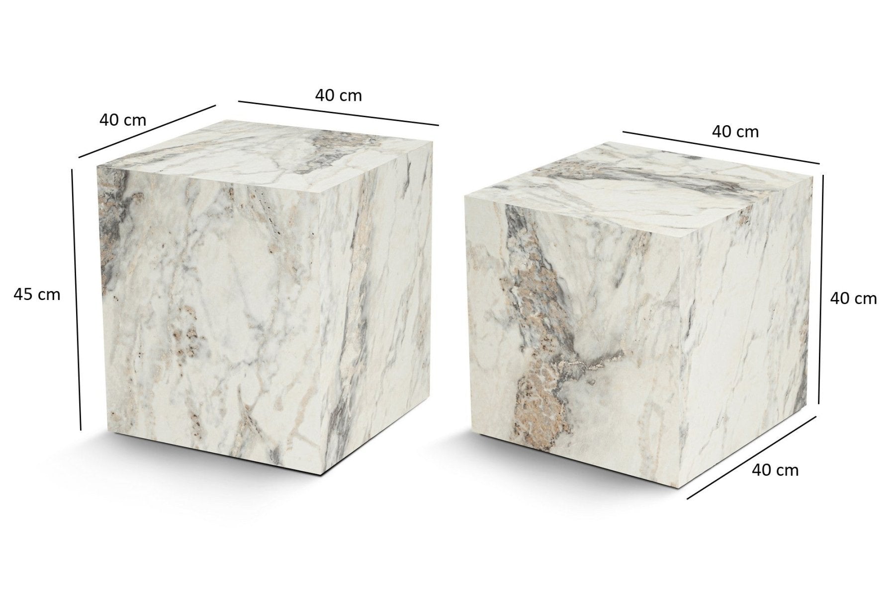 Beschrijving en specificaties van Moderne Bijzettafel Set van 2 Kuub Vierkant Marmerlook - 40x40x40/45