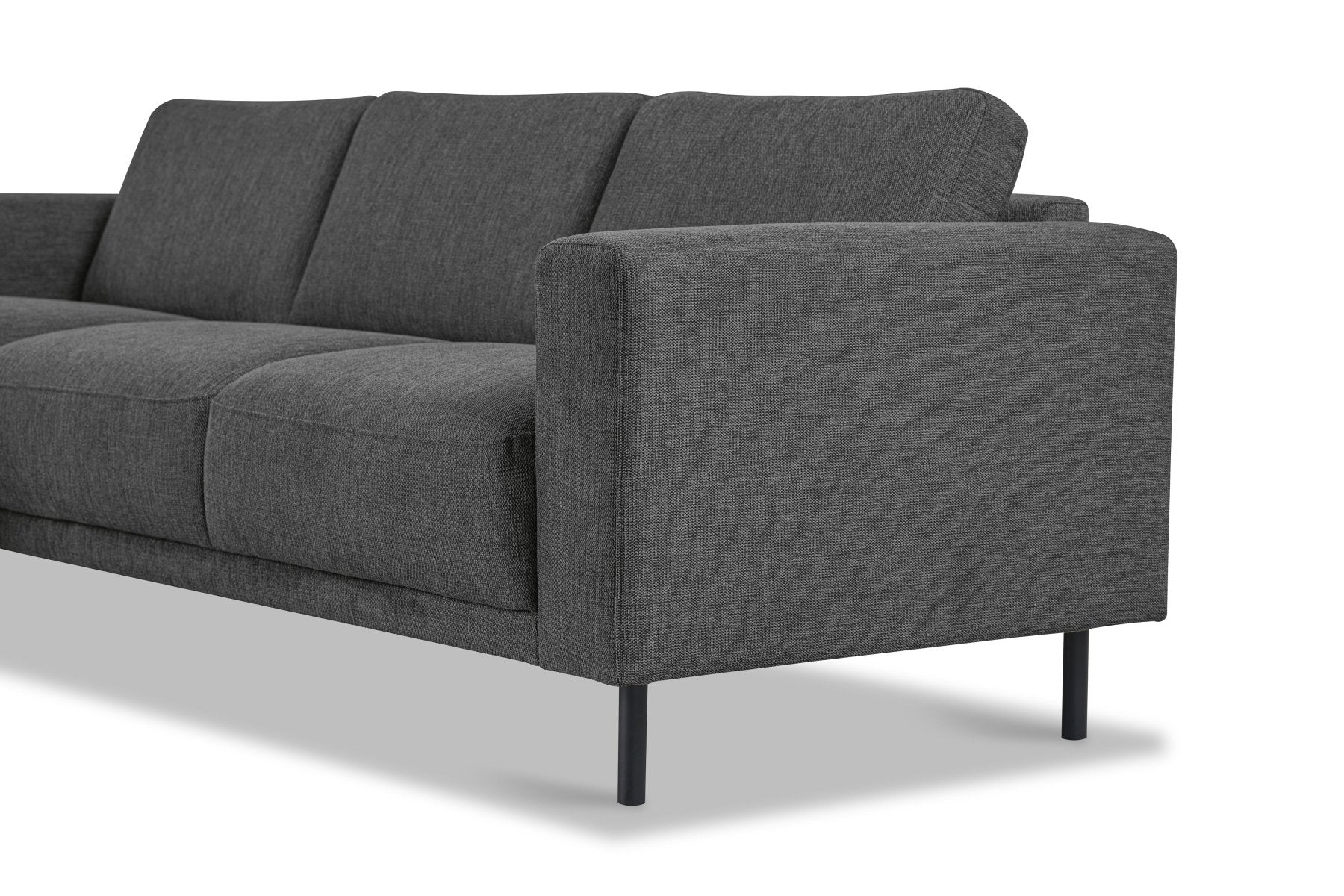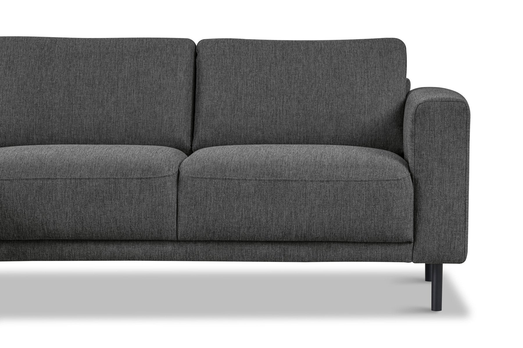 - Moderne afwerking: Slanke zwarte metalen poten (150 mm hoog) geven de bank een luchtige uitstraling en maken schoonmaken eenvoudig.