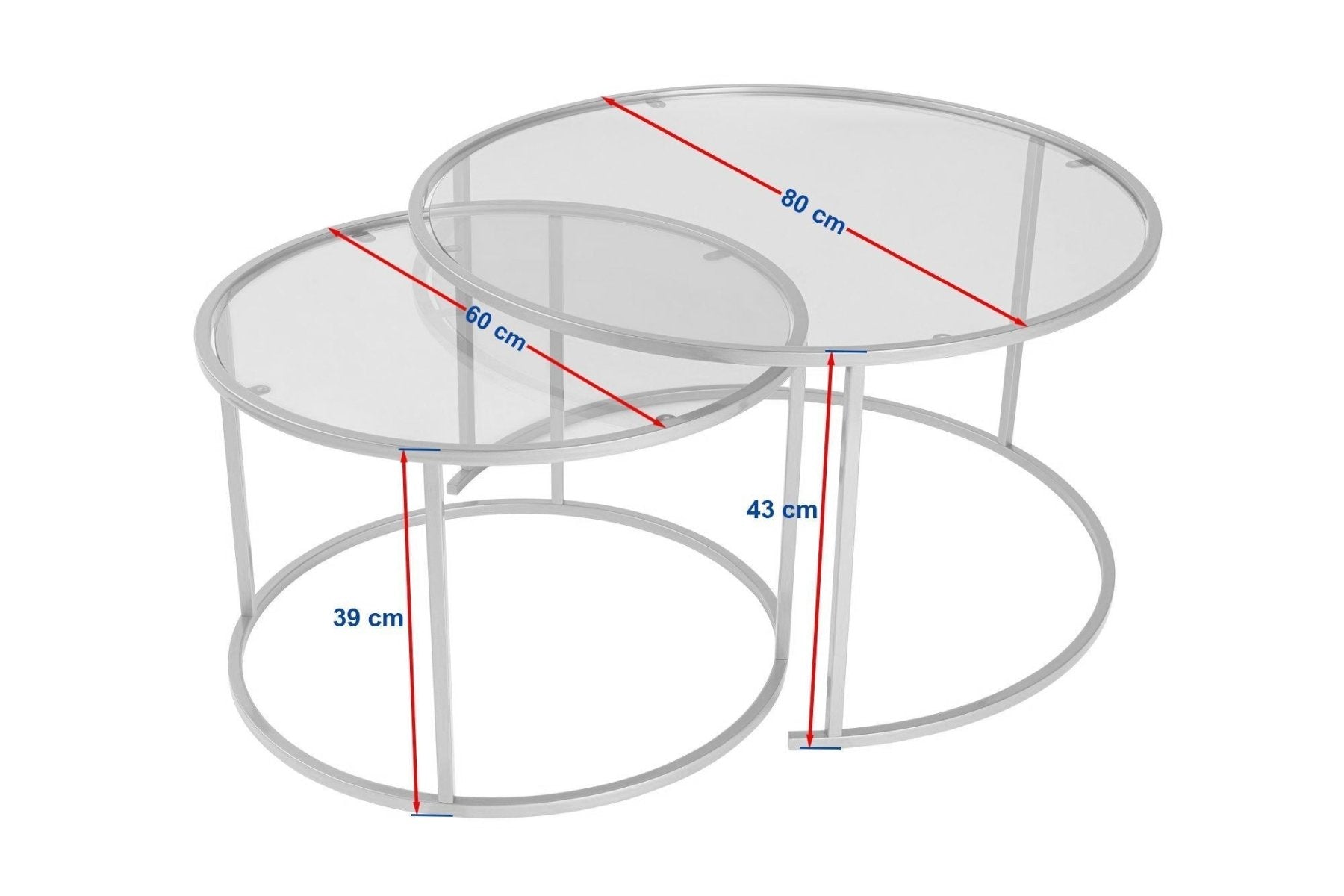 Beschrijving en specificaties van Moderne Ronde Salontafel Set van 2 Uru Goud - Brons Glas - 80/60 cm