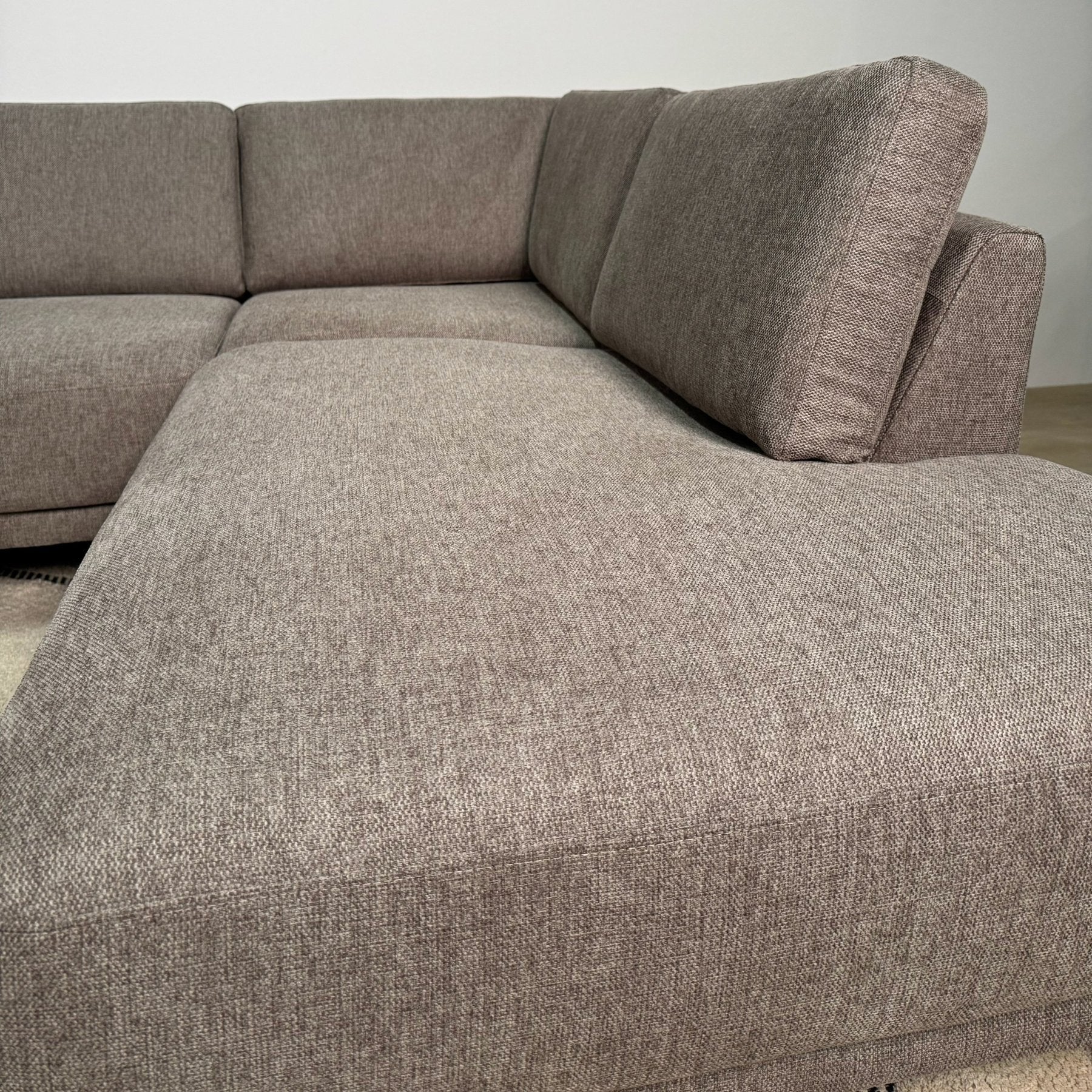 Moderne U-Bank Hoekbank Rechts Taupe Stof Aniko 310x197x78 cm