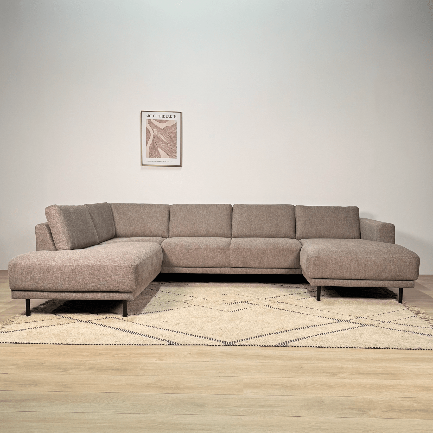 De Aniko U-vorm hoekbank is dé keuze voor wie ruimte wil combineren met stijl. Met royale afmetingen en een comfortabele lounge-indeling is deze bank ideaal voor gezinnen of voor wie graag gasten ontvangt. De strakke lijnen en taupe stof maken dit een tijdloze blikvanger in je interieur.