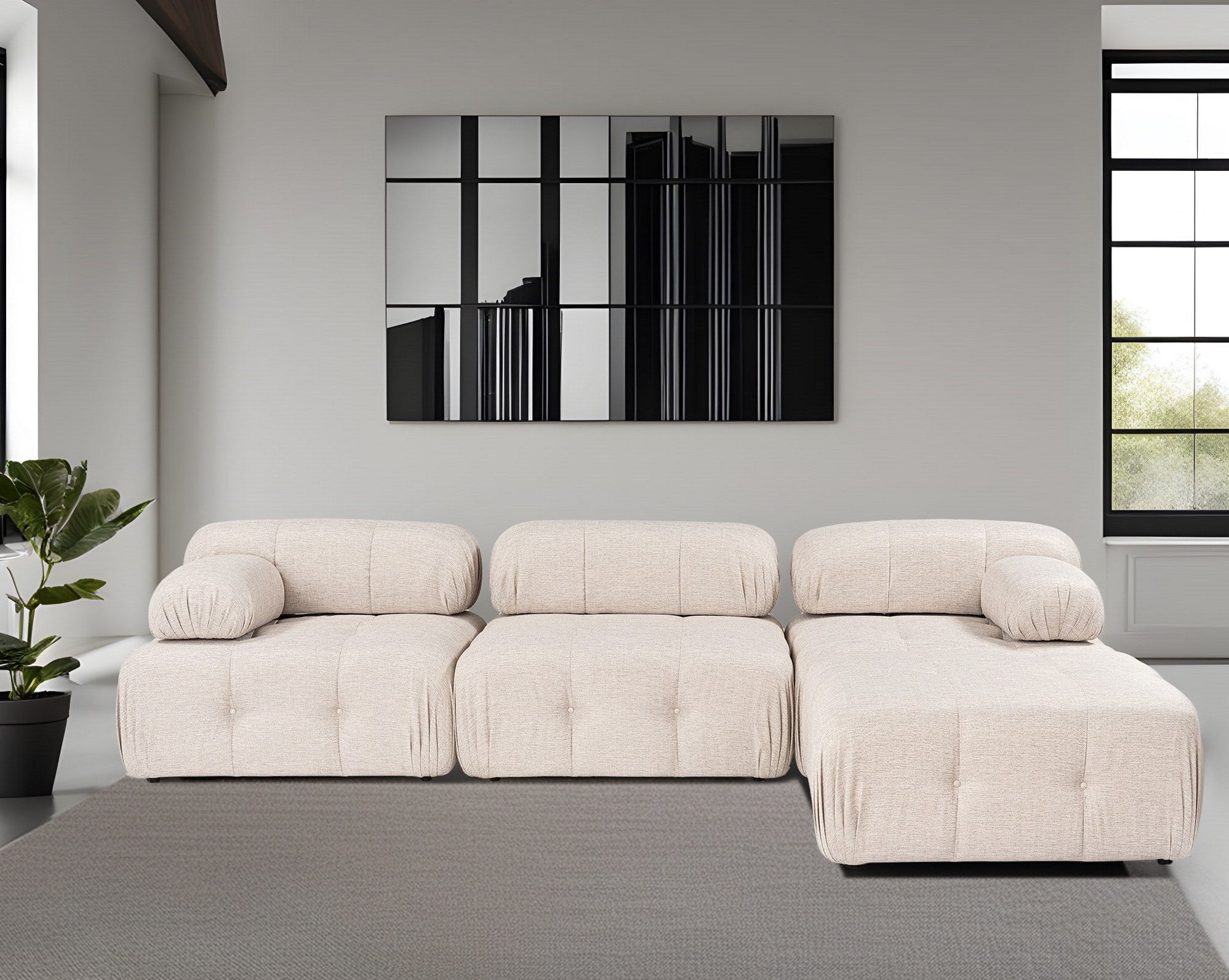 Beschrijving en specificaties van Modulaire bank 3-zits met hocker Doblo licht beige