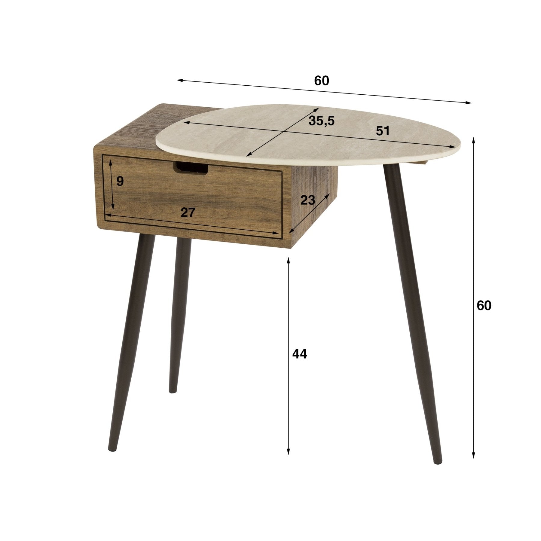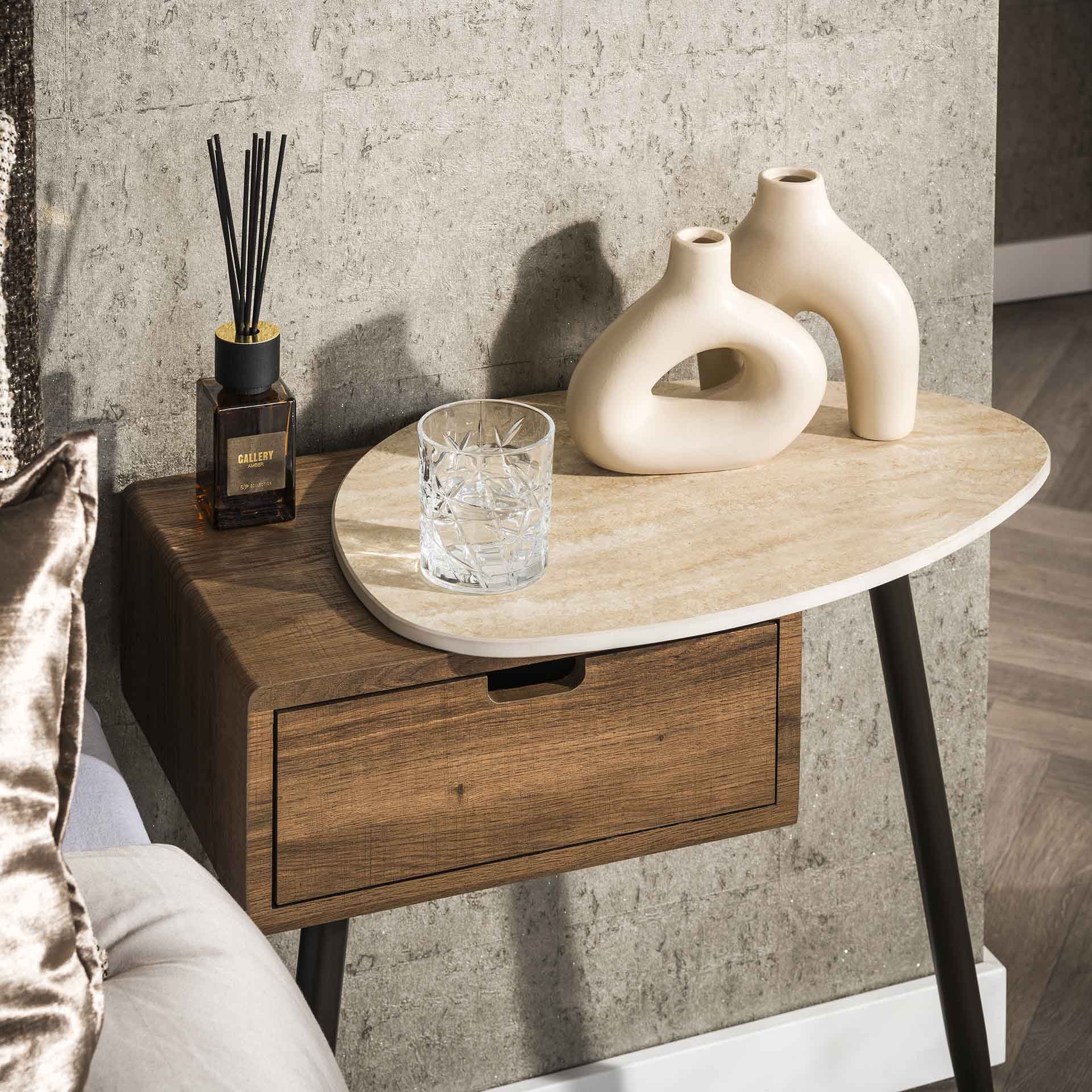 Nachtkastje Borea Rechts 1 lade Keramiek Travertine