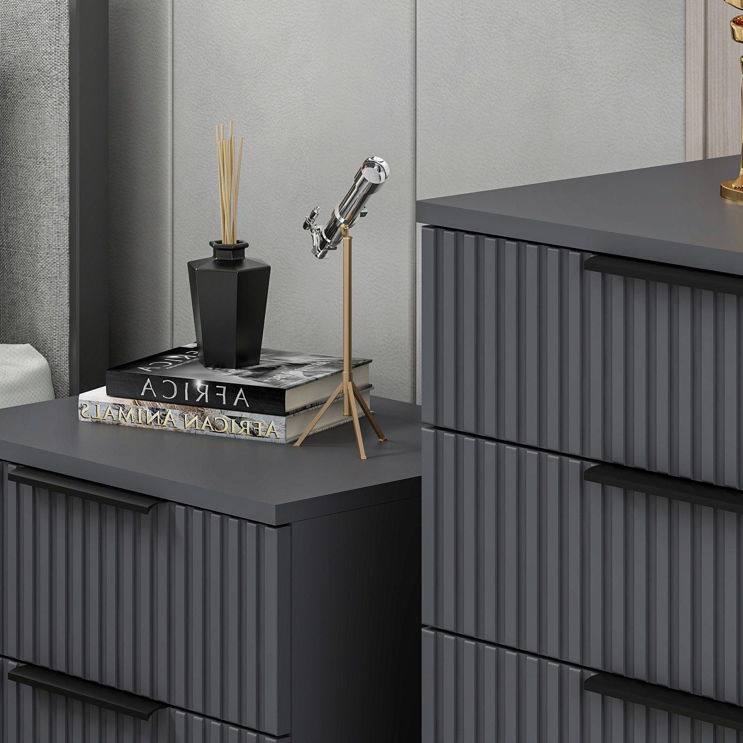 Met zijn prachtige antracietkleur past ons nachtkastje moeiteloos bij elke slaapkamerinrichting. Het strakke en moderne ontwerp voegt een vleugje verfijning toe aan je ruimte en creëert een harmonieuze sfeer waarin je graag thuiskomt.
