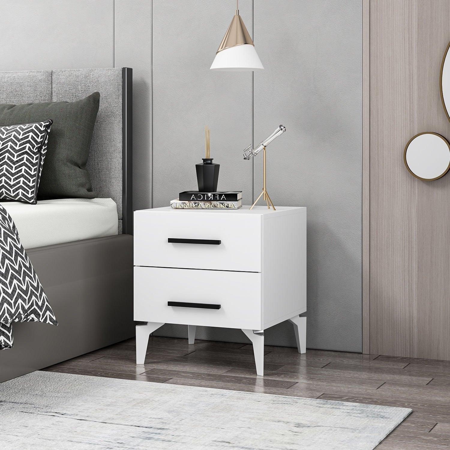 Elegant ontwerp: het strakke en moderne ontwerp van dit nachtkastje voegt een vleugje verfijning toe aan je slaapkamerinrichting. De strakke lijnen en witte kleur maken het een veelzijdig stuk dat bij elke interieurstijl past.