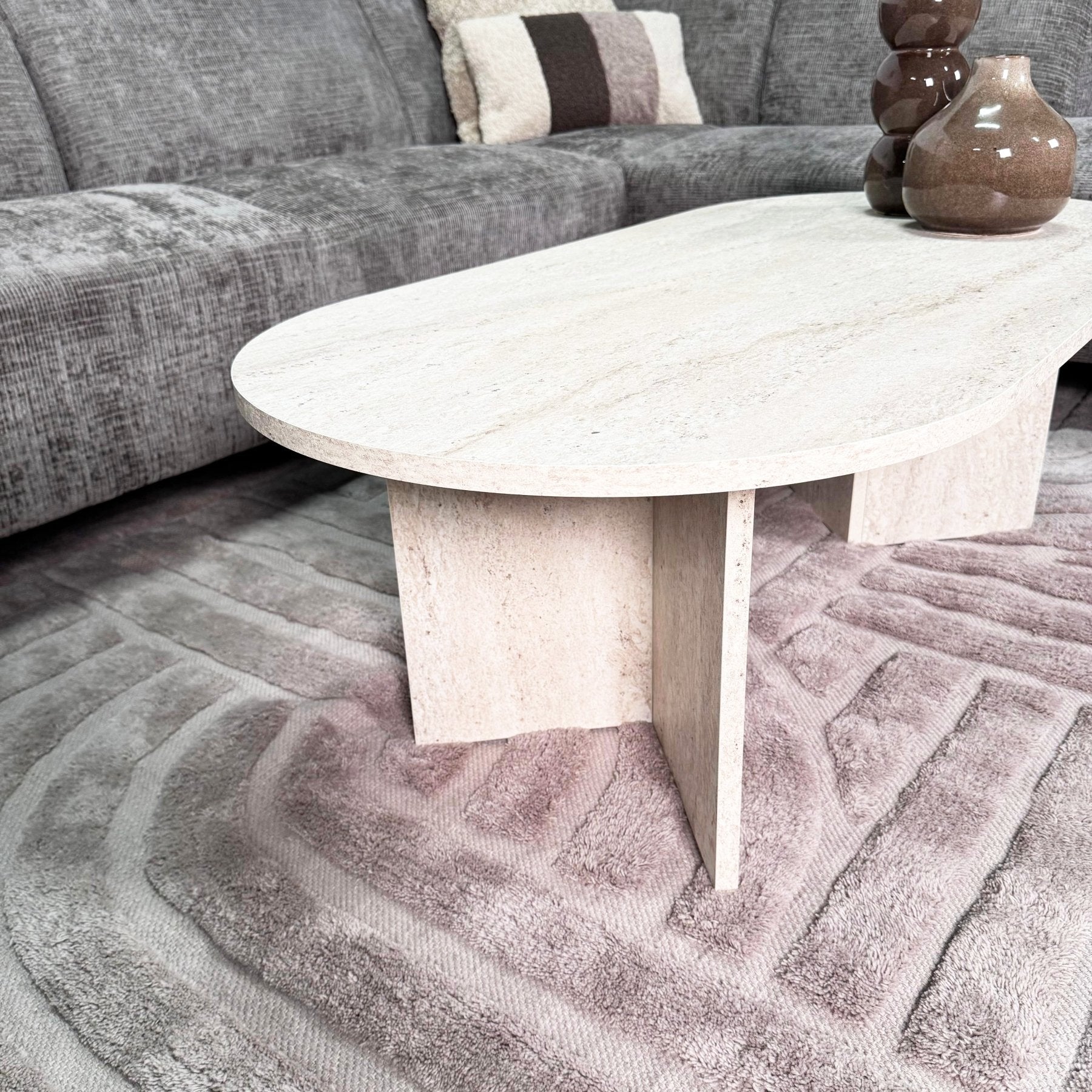 Beschrijving en specificaties van Ovale Salontafel Travertin look Sabla - 119x60