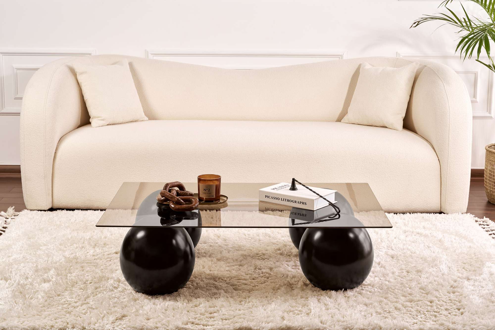 Rechthoekige salontafel brons getint glas zwarte bolpoten Sera 110x75 cm
