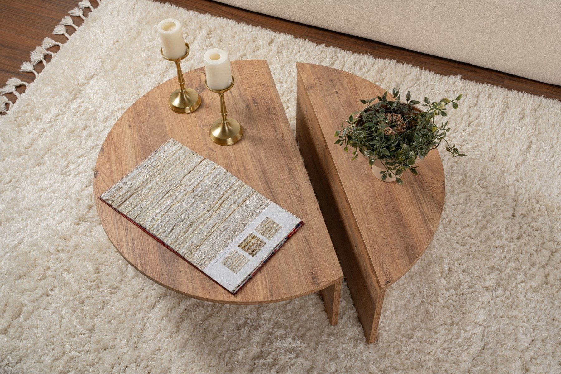 Beschrijving en specificaties van Ronde Salontafel Atlantisch Dennenhout Getrapt Melamine 90 cm Orin