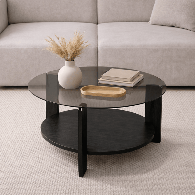 Ronde salontafel zwart melamine rookglas Ø75 cm - Cairo