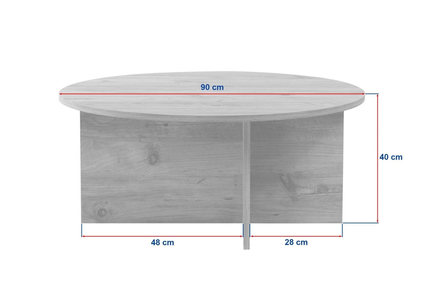 Beschrijving en specificaties van Ronde salontafel Dakota dennenhout melamine 90x90x40 cm