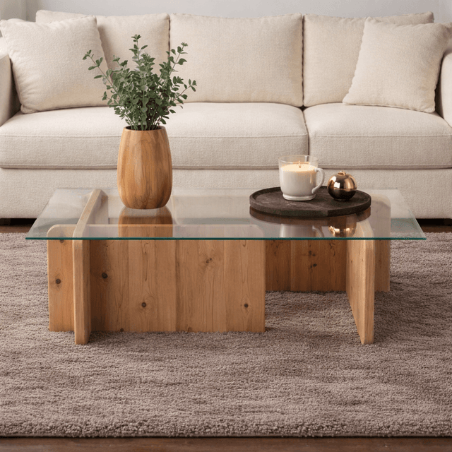Beschrijving en specificaties van Salontafel Atlantisch Dennenhout Melamine Glas Opal 105x65x30 cm