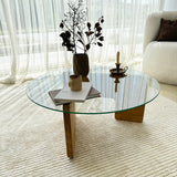Salontafel Rond Glas Mio - 75 cm - Houten onderstel