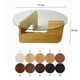 Beschrijving en specificaties van Salontafel Rond Glas Mio - 75 cm - Houten onderstel