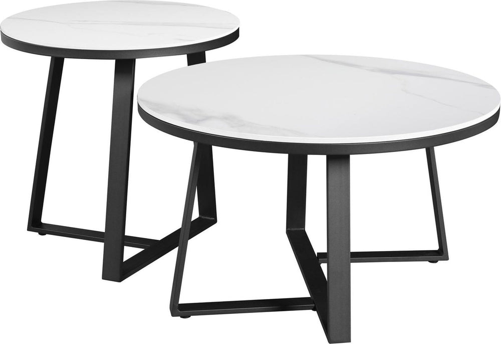 Salontafel Set van 2 Tanner Rond Marmerlook Wit