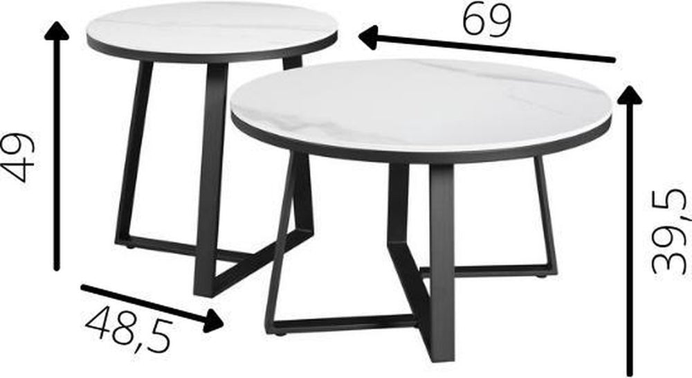 Beschrijving en specificaties van Salontafel Set van 2 Tanner Rond Marmerlook Wit