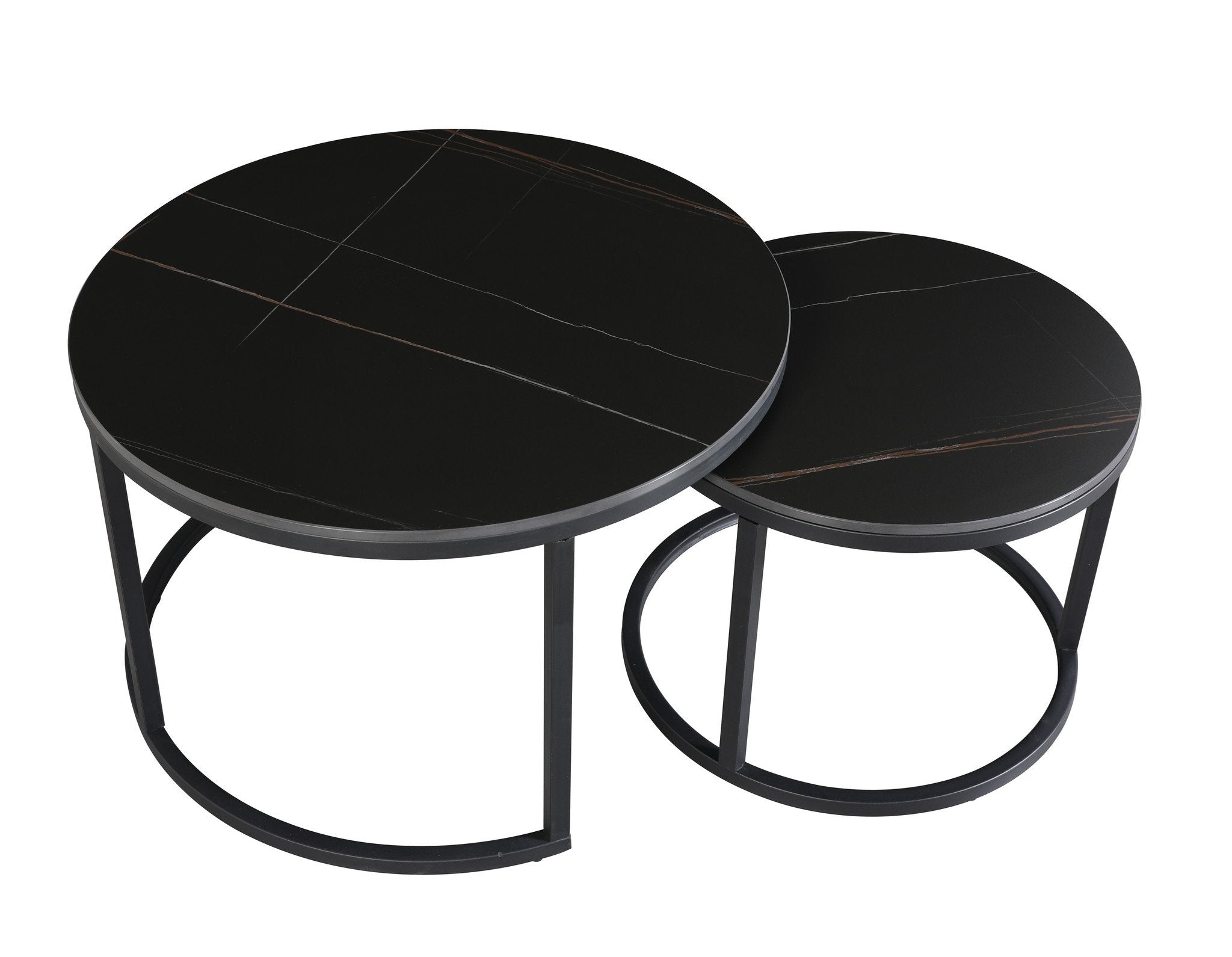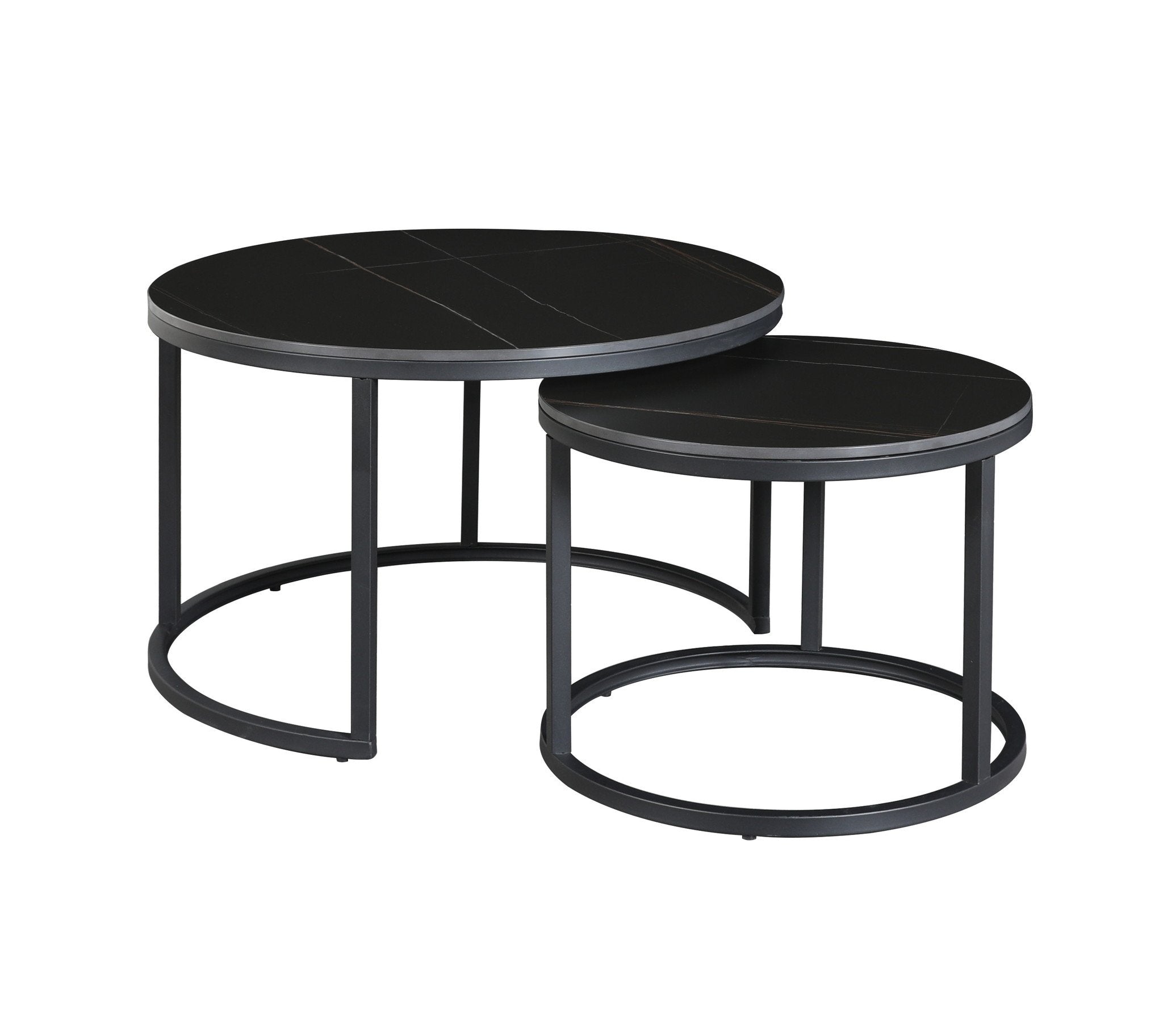 Beschrijving en specificaties van Salontafel set van 2 Trevor marmer zwart rond