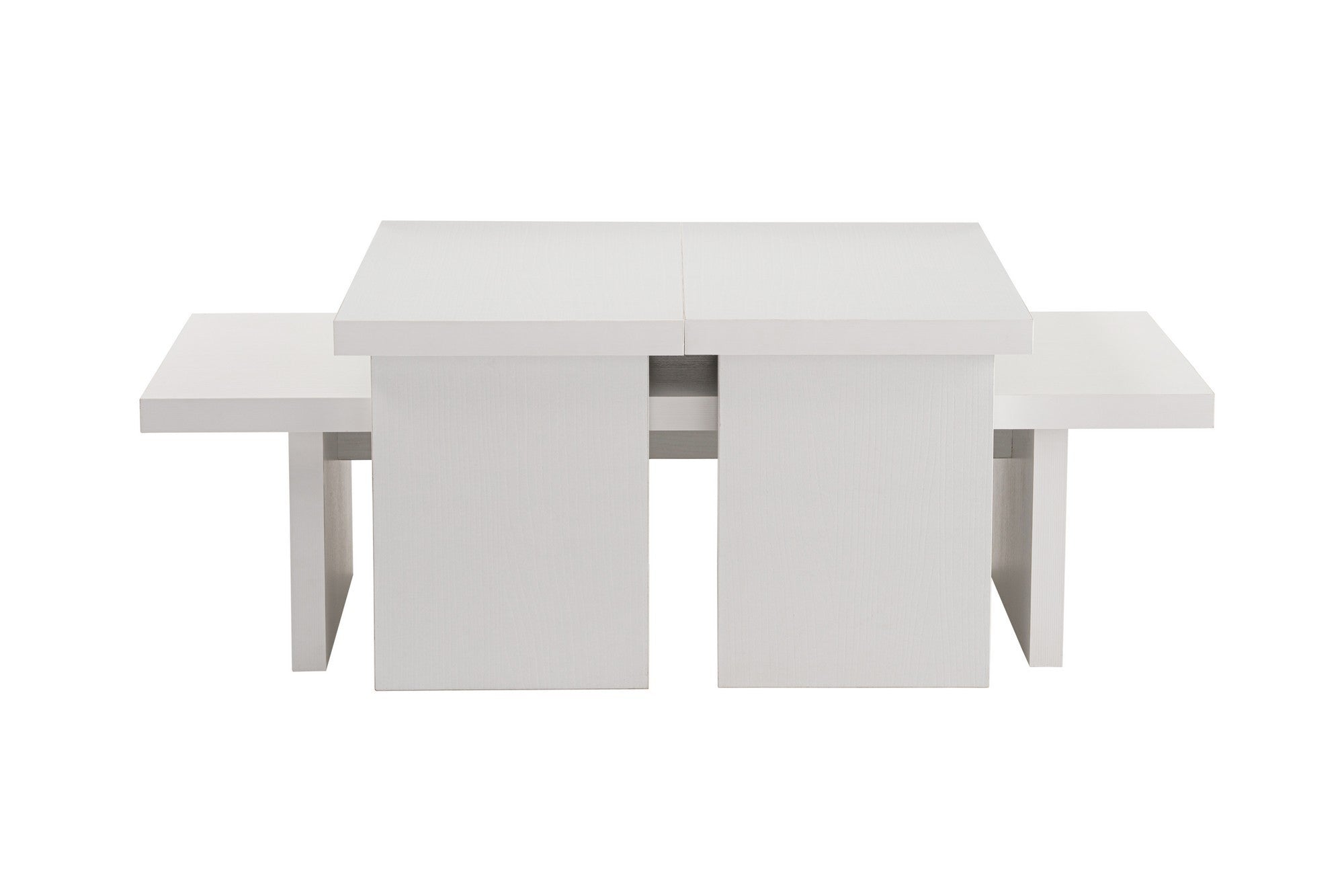Het strakke ontwerp en de strakke lijnen van deze salontafel maken het de perfecte aanvulling voor elk modern of eigentijds huis. De houtwitte kleur voegt een vleugje helderheid en frisheid toe aan je woonkamer en creëert een uitnodigende en gezellige omgeving om in te ontspannen.
